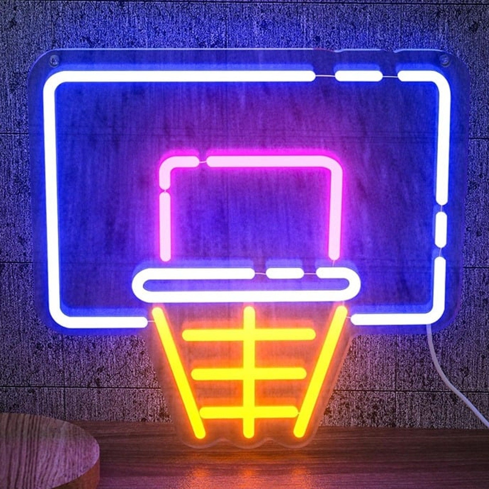 Elevate your game room with the Fun Vivid Bright Blue Basketball Goal LED Night Light! This sporty and vibrant decoration brings the excitement of the NBA right into your space. Perfect for basketball fans, it adds a dynamic and playful touch to any room.