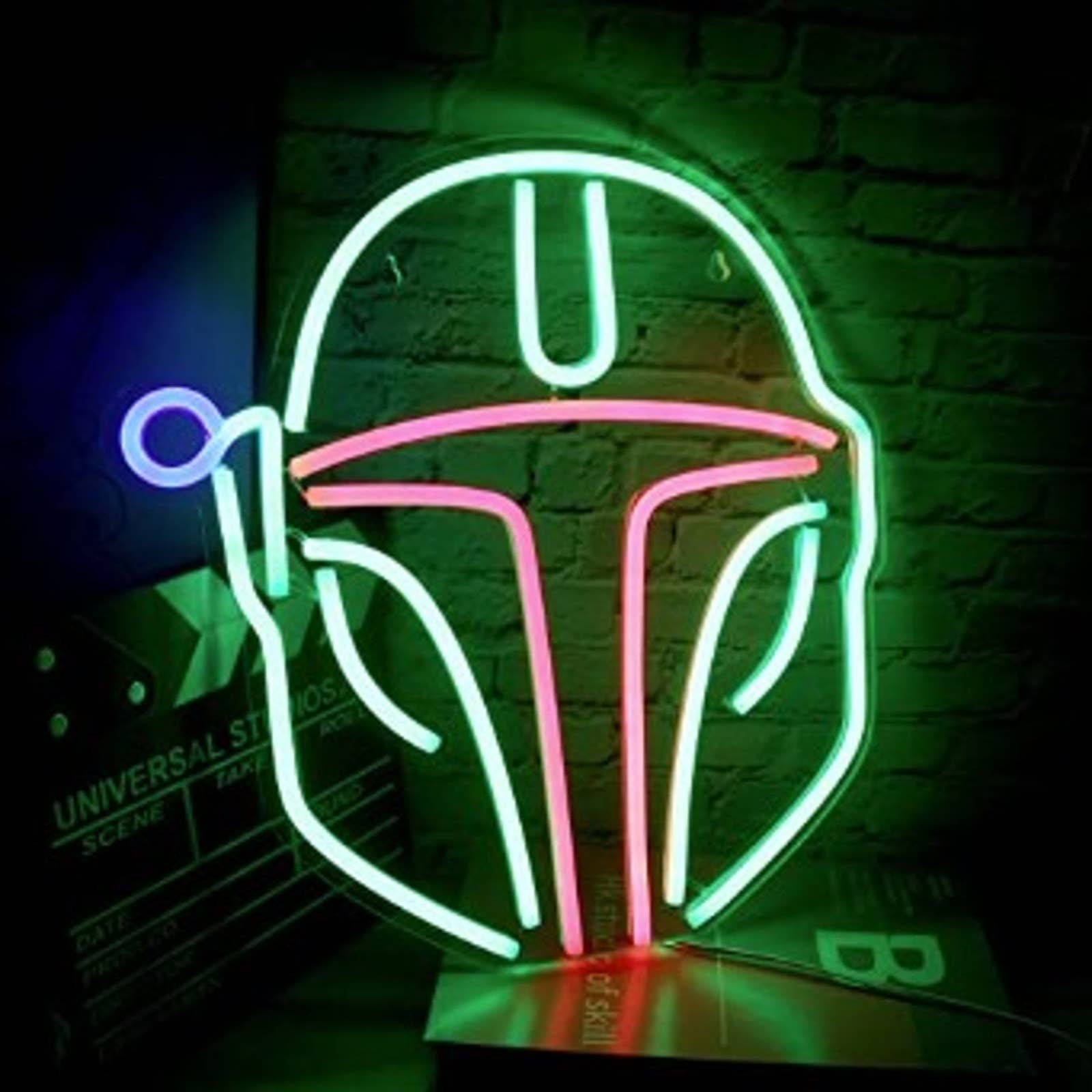 Fun Vivid Bright Green Mandalorian Helmet LED Night Light Star Wars Decoration