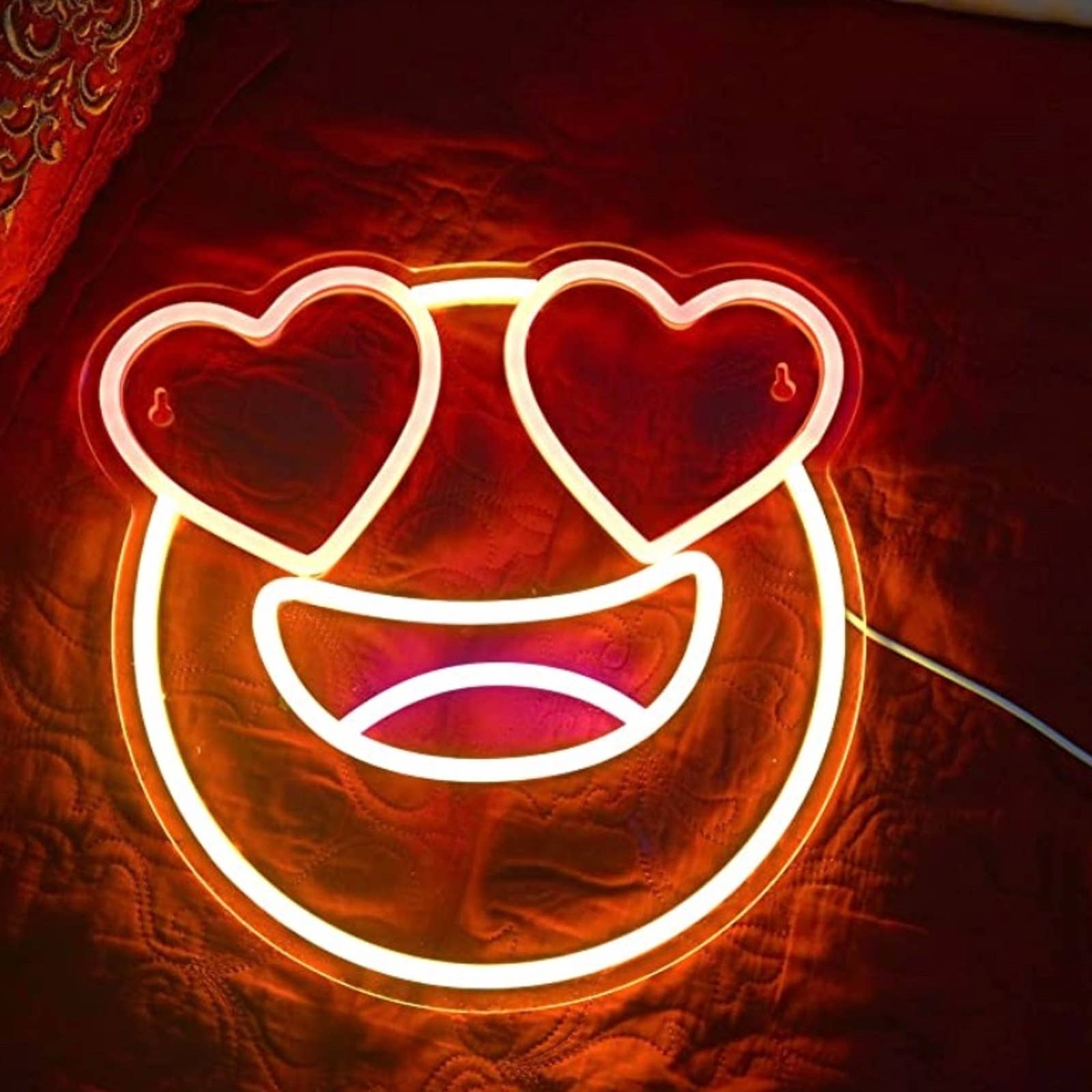 Fun Vivid Bright Happy Heart Eye Love Emoji LED Night Light Sign Room Wall Decor