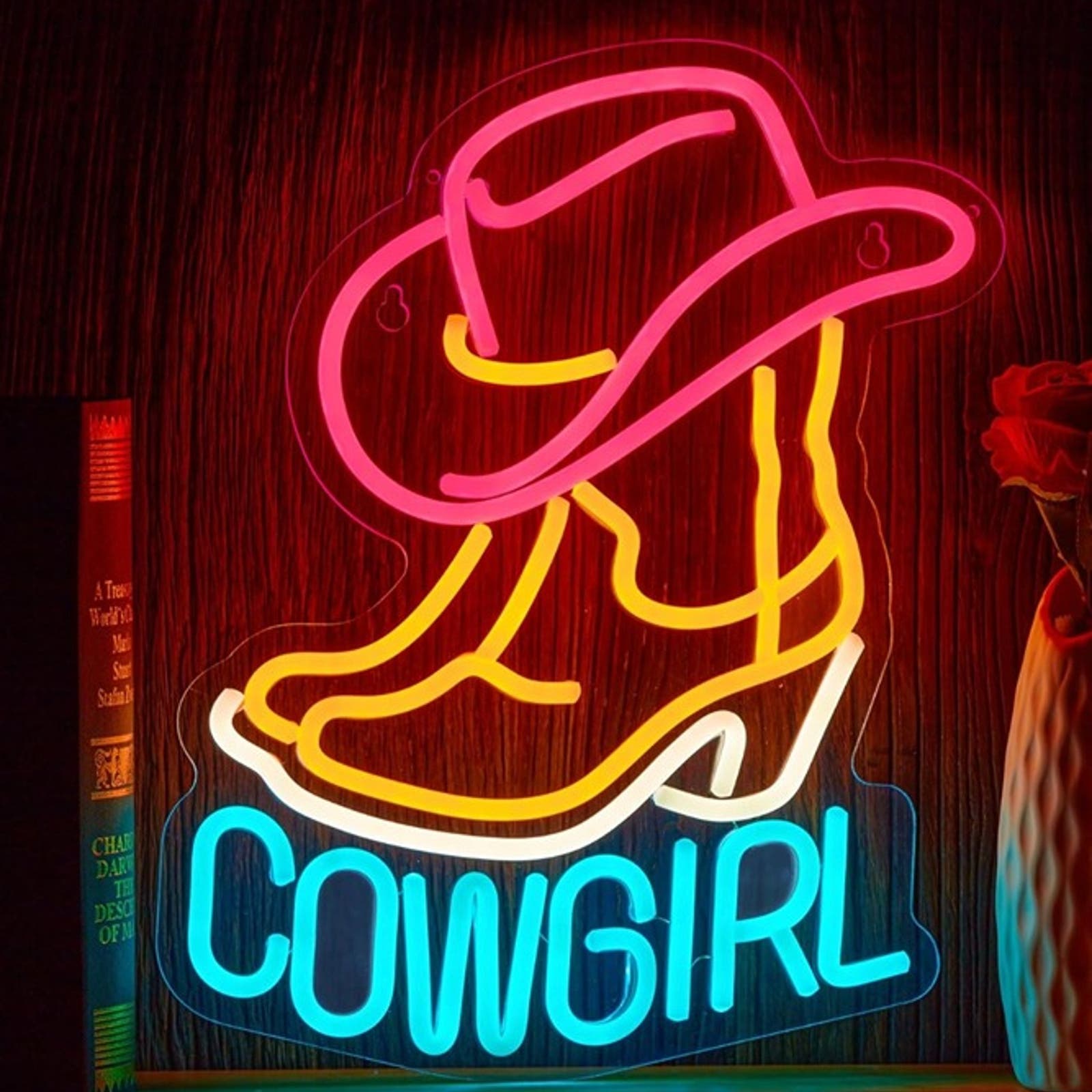 Fun Vivid Bright Quality Cowgirl Boots & Hat LED Night Light Room Wall Decor