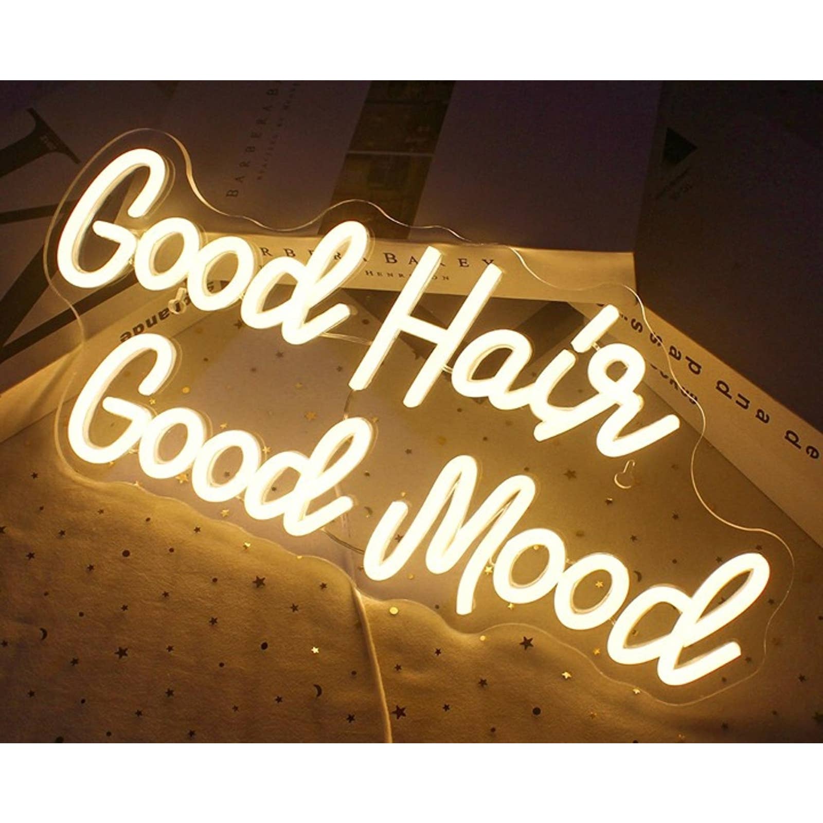 Description: Elevate your salon or spa with the "Good Hair Good Mood" LED Light. This vivid addition sets a vibrant and positive ambiance.