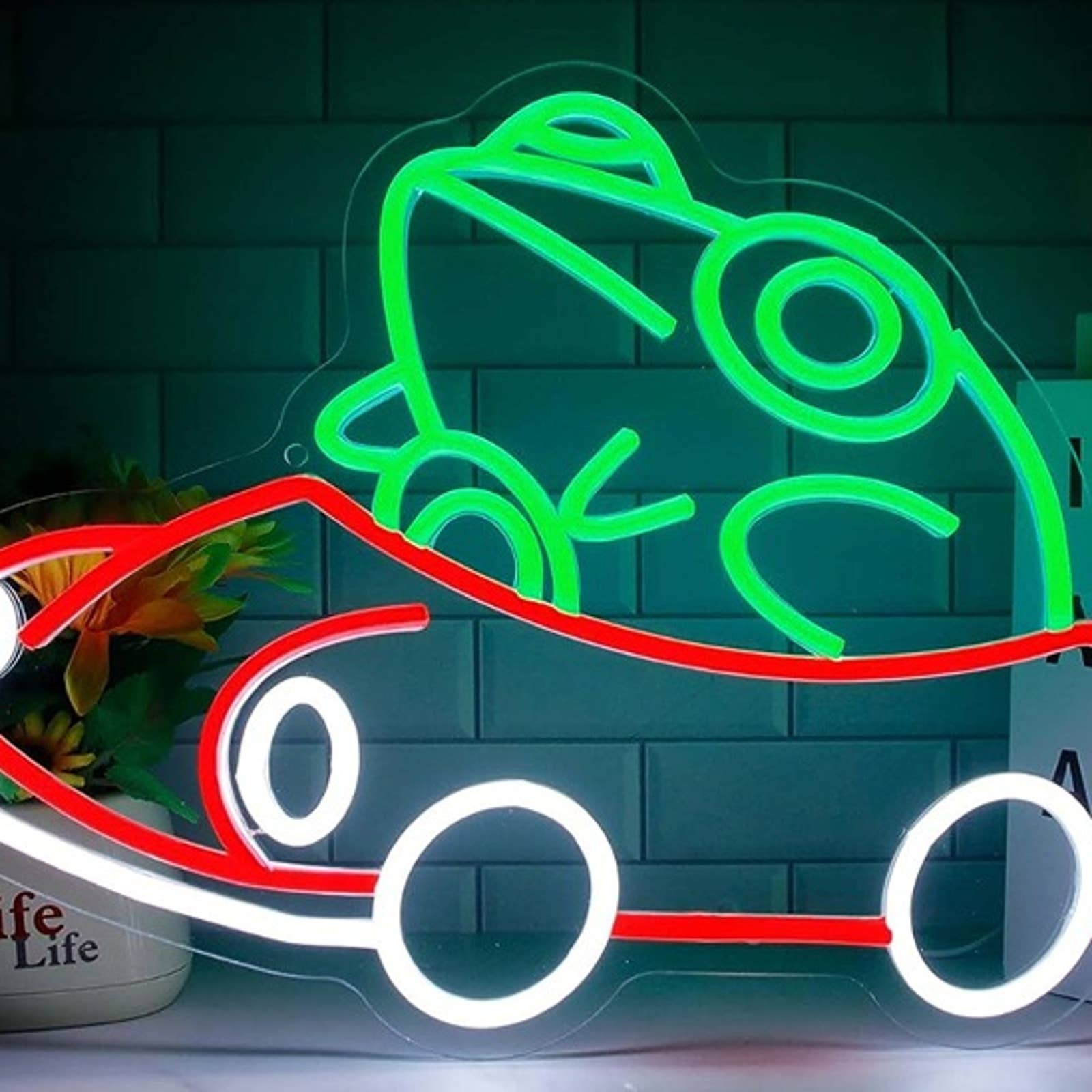 Add a playful touch to your space with the Funny Frog Driving in Red Car LED Night Light. This delightful wall decor is designed to bring smiles and charm to any room, creating a lively atmosphere that's sure to brighten your surroundings.