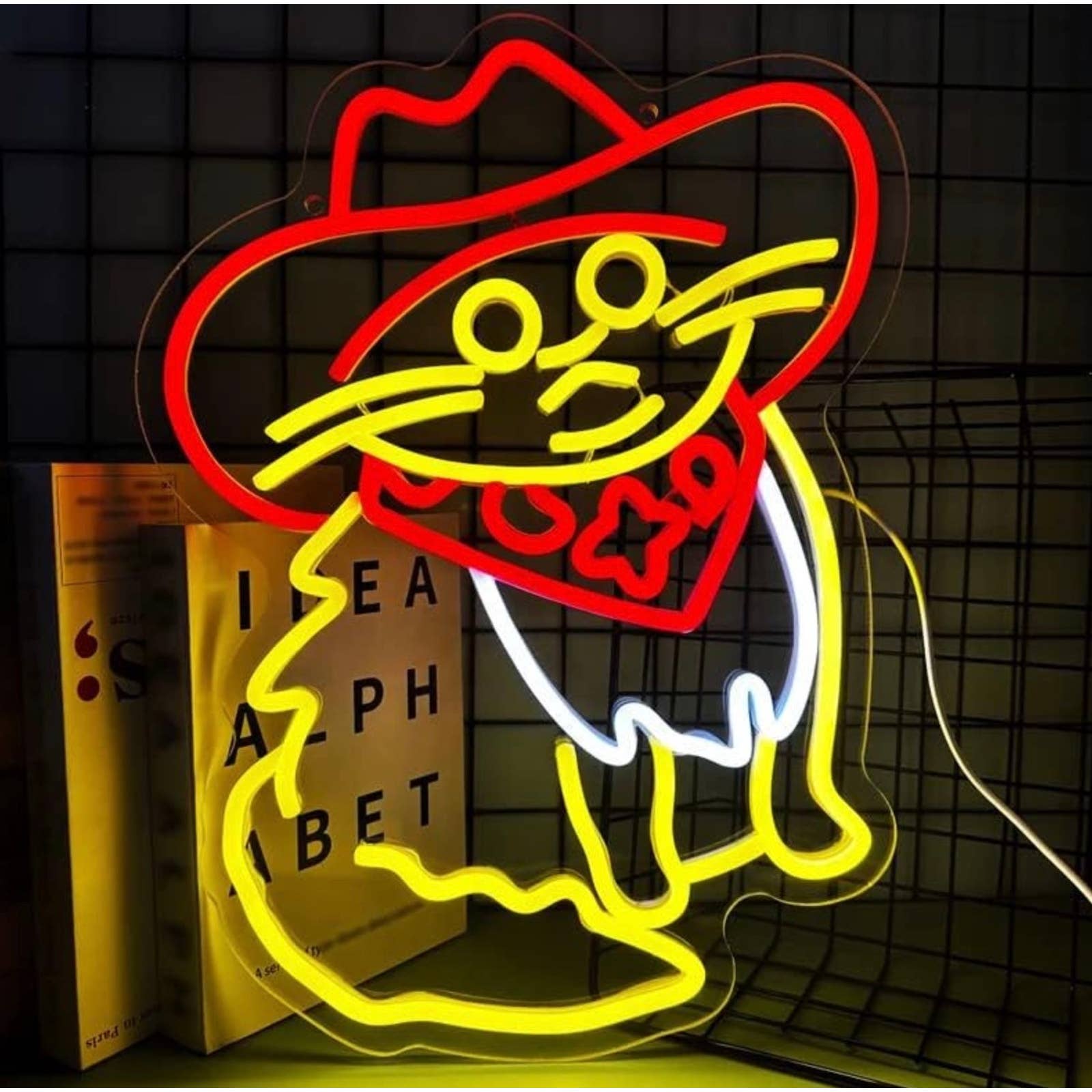 Funny Bright Yellow Cowboy Kitty Cat LED Night Light Room Wall Decoration