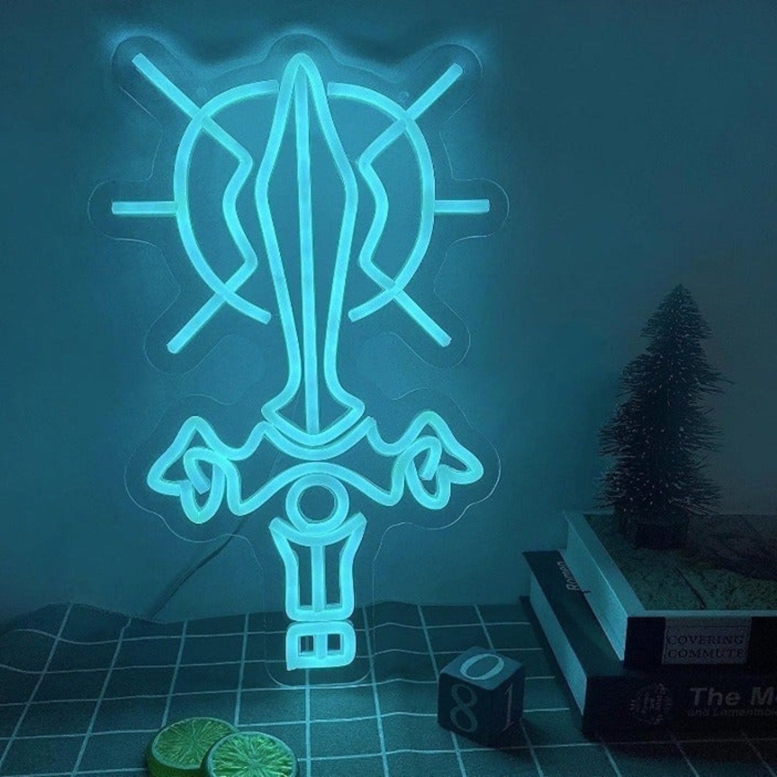 Enhance your gaming room decor with the LoZ BOTW TOTK Neon Sign. The perfect gift for gamers, this neon sign features a shining Master Sword icon to ignite your gaming skills.