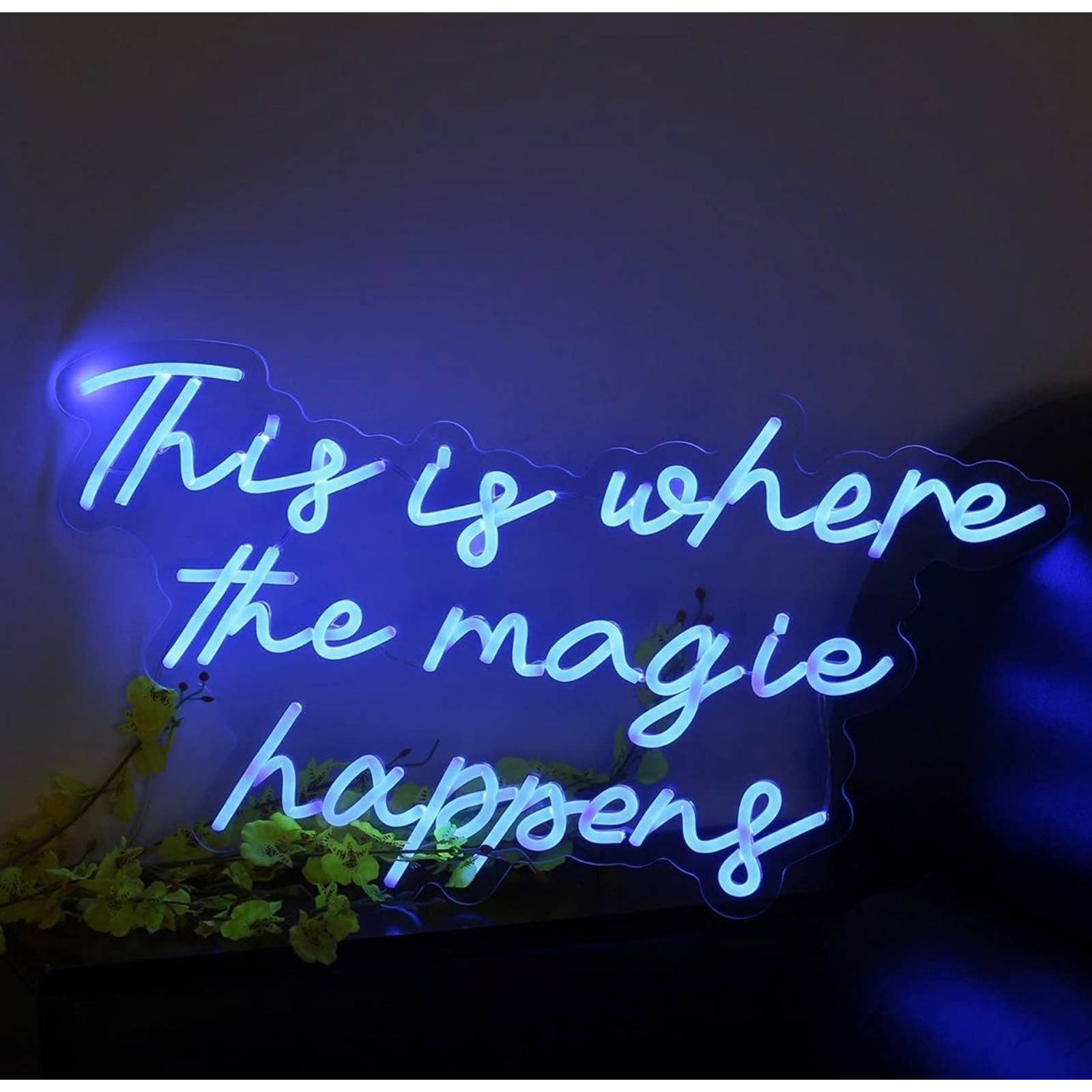 Lovely Blue Large Bright “ This Is Where The Magic Happens” LED Light Sign Decor