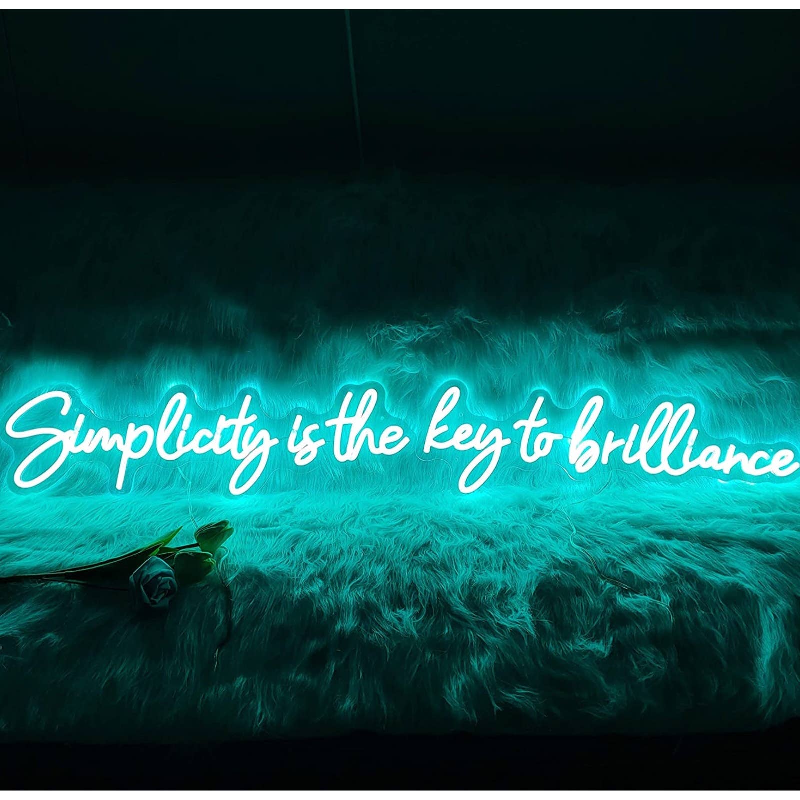 Giant Large Neon Sign - Simplicity is the key to brilliance split into two light plates, include a 23 inch "Simplicity is the" part and a 22 inch "key to billiance" part. These two neon signs add up to 45 inches. You can hang them horizontally or vertically to meet your different use scenarios.