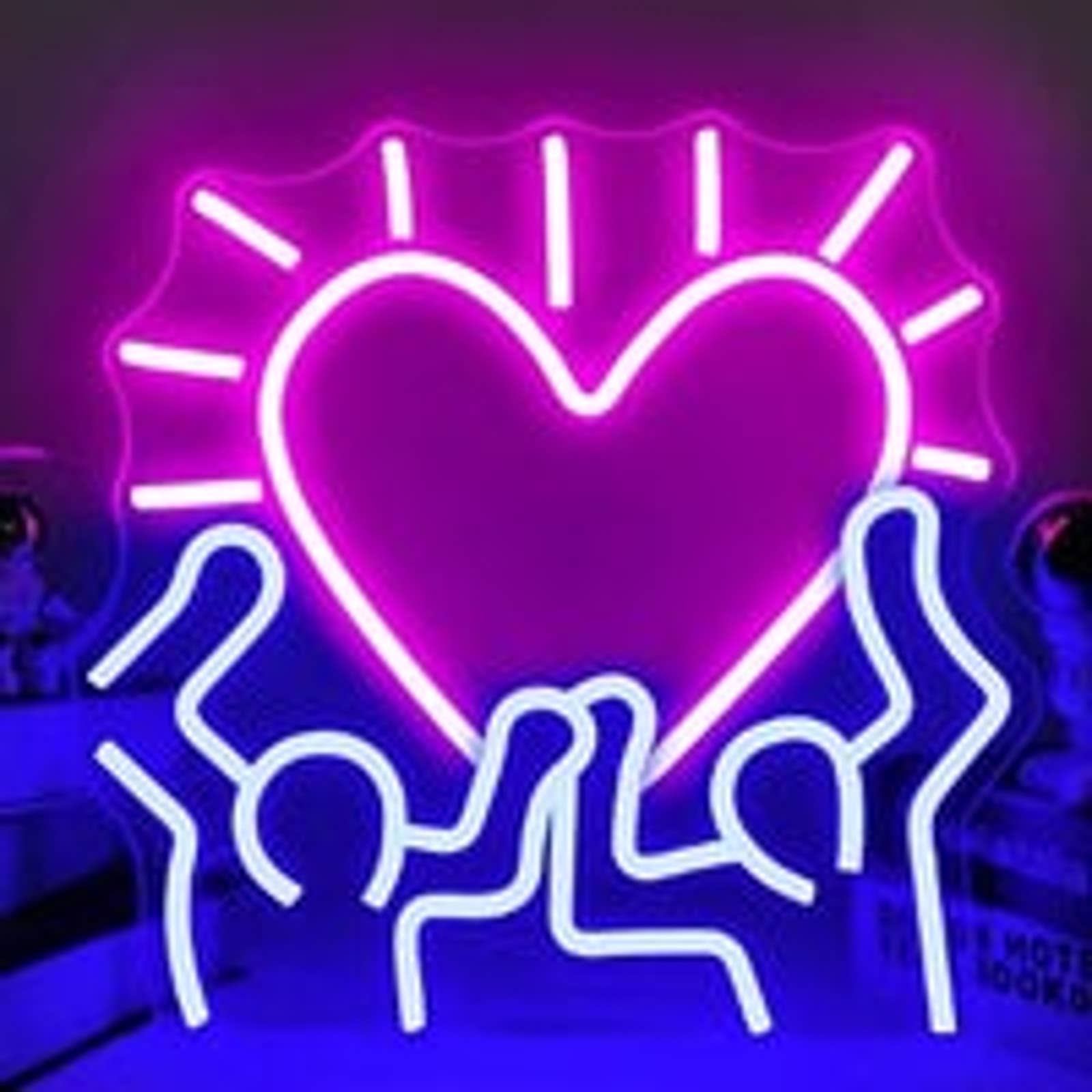 Awesome Artistic Styling: This heart neon sign features a vivid design inspired by famous graffiti artists. Its bright colors and unique shape make it a captivating and vibrant addition to any space, appealing to teenagers and adults alike.