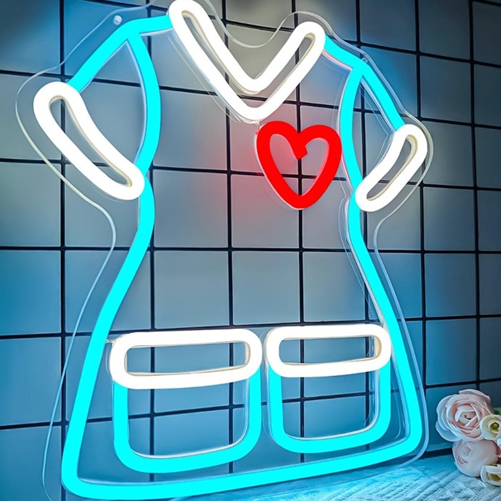 Lovely Bright Blue Nurse Scrub Shirt Red Heart LED Night Light Hospital Room Decor