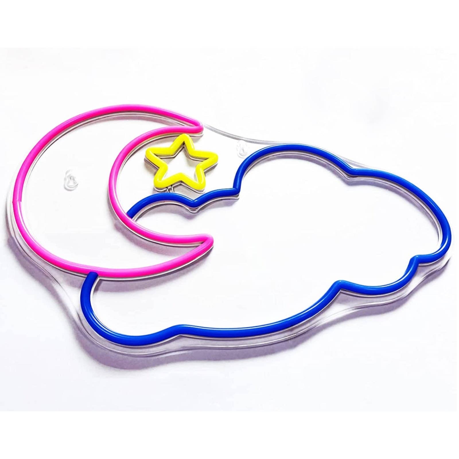 Cloud Moon Star Neon Sign: Cloud moon neon sign is wall decor for bedroom aesthetic, add lovely vibe with pink/blue/yellow LED signs for wall decoration. Soft color make it create a delightful and fairytale effect, making simple life more colorful and interesting.
