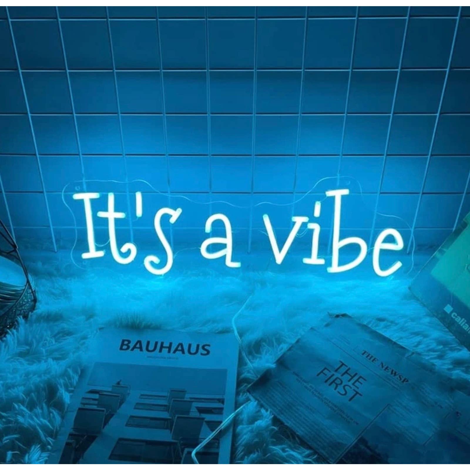 Lovely Bright Cool Blue “It’s A Vibe” LED Night Light Sign Room Wall Decor