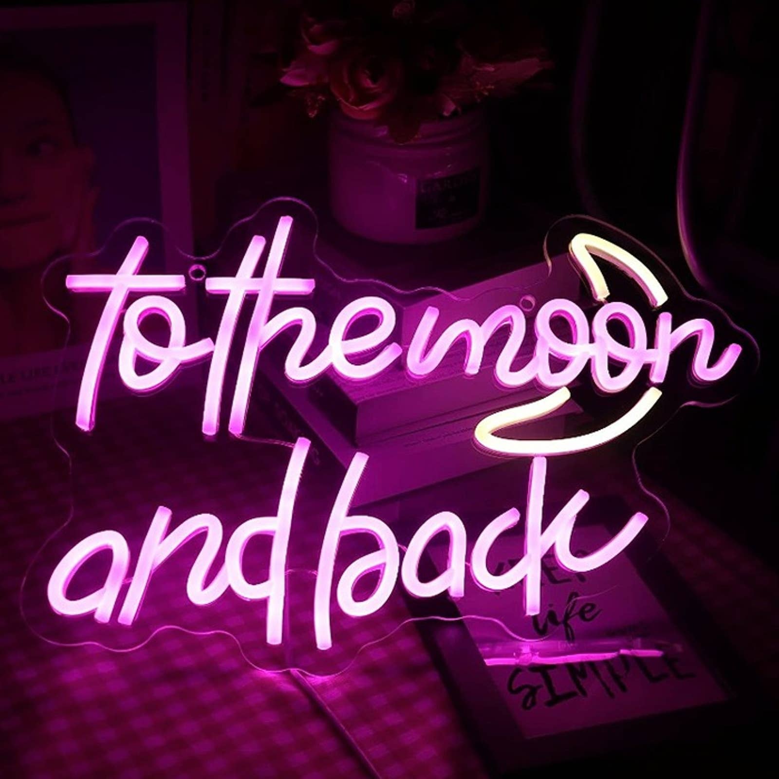 UNIQUE DESIGN: Create a dreamy and romantic ambiance with this "to the moon and back" neon sign night light. The combination of bright pink and yellow colors adds a vibrant and playful touch to your space. It's perfect for home wall decorations.