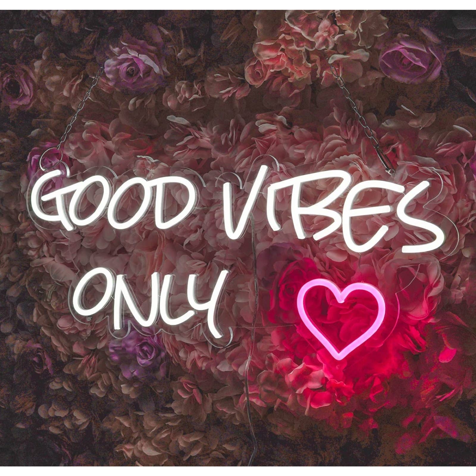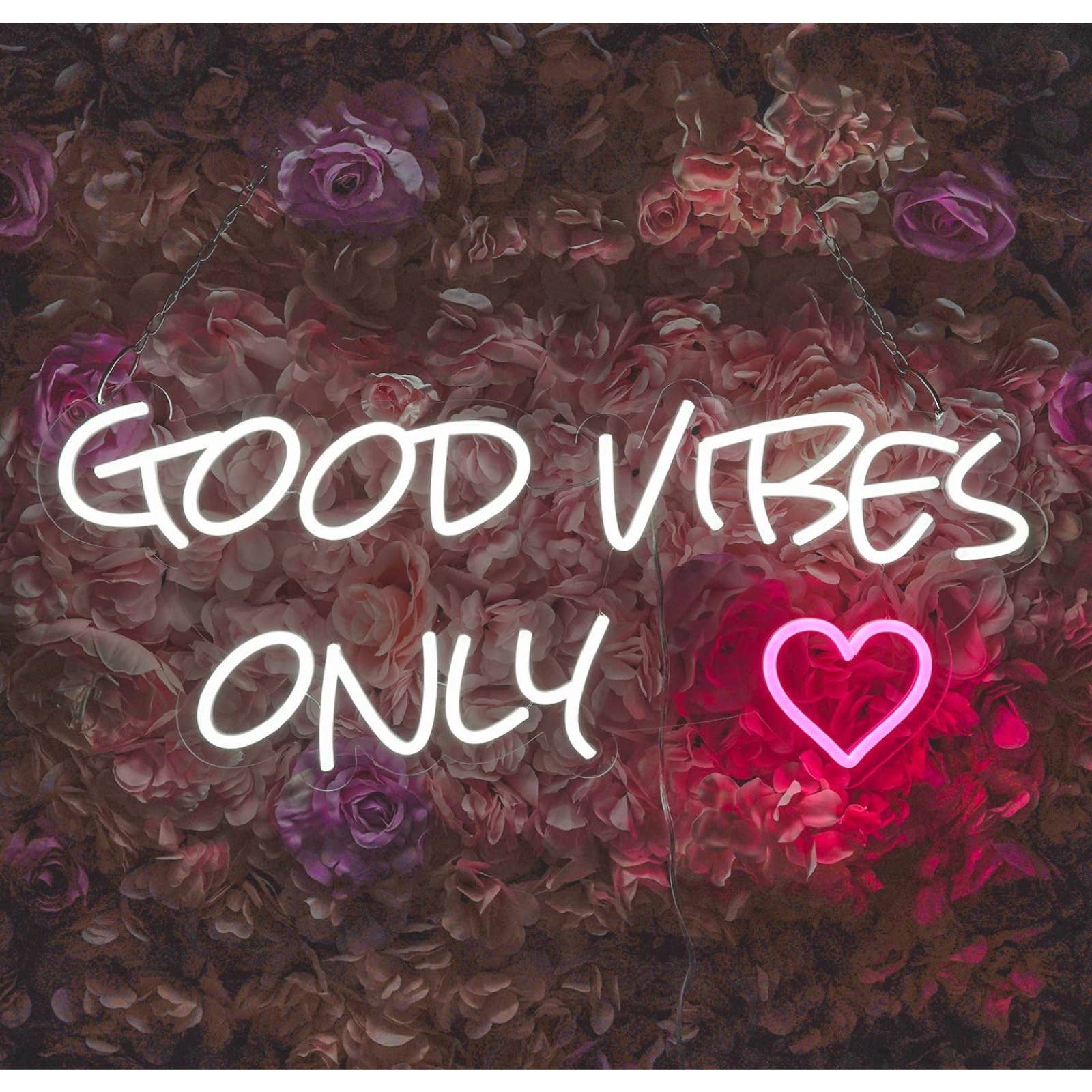 Light up your home: Good Vibes Only neon sign use LED neon strip, a brilliant neon lights show across your home or garden. Bring the fun and excitement of neon light with 3D art will increase the atmosphere of your bedroom and living room.