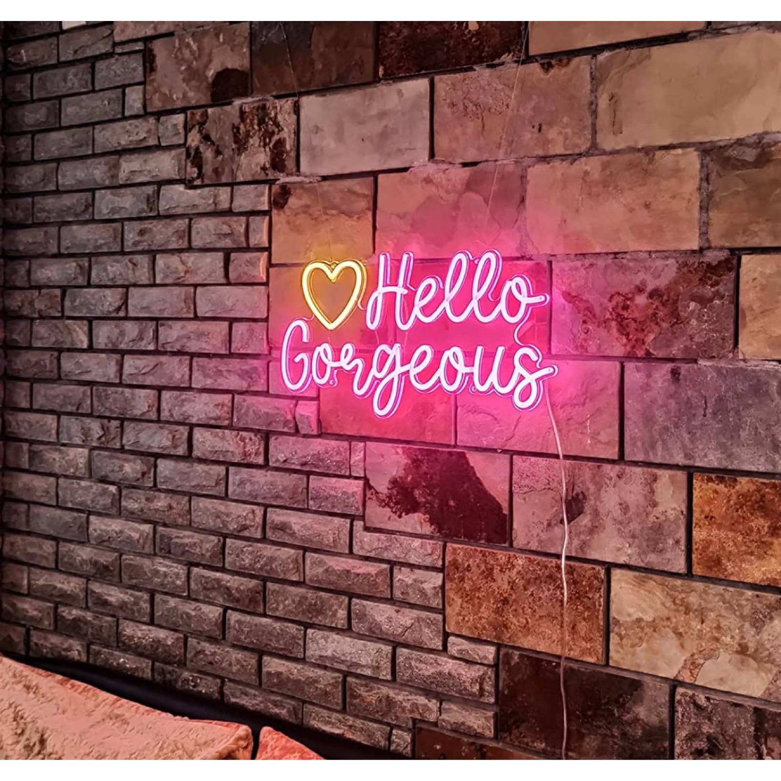 Love Statement – Hello Gorgeous neon sign in pink color, comes with a warm heart on it, an gorgeous love statement; it is glitzy, glamorous & stylish, nostalgic energizing glow lighting