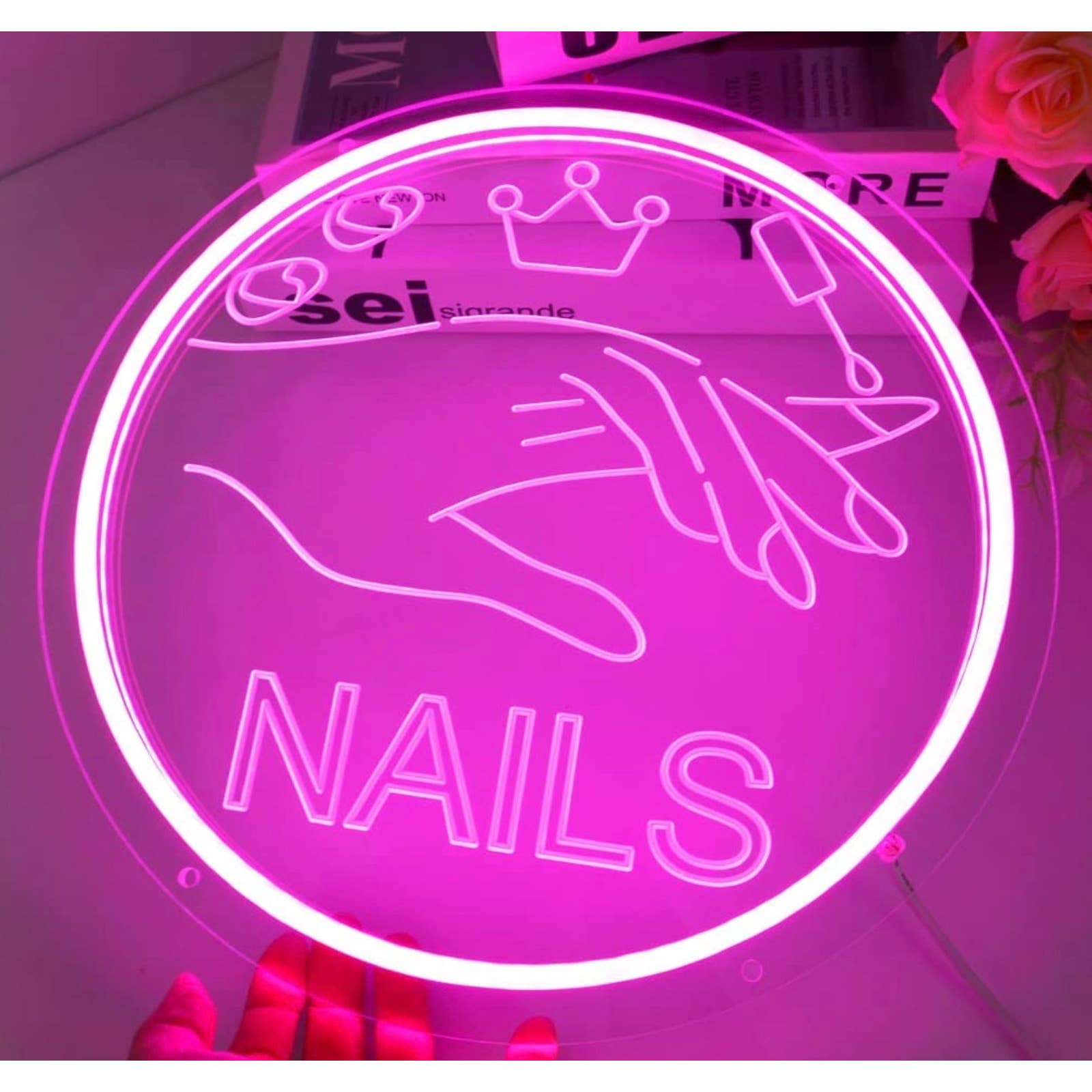 Lovely Bright Pink Nails Salon Spa LED Light Business Wall Decoration