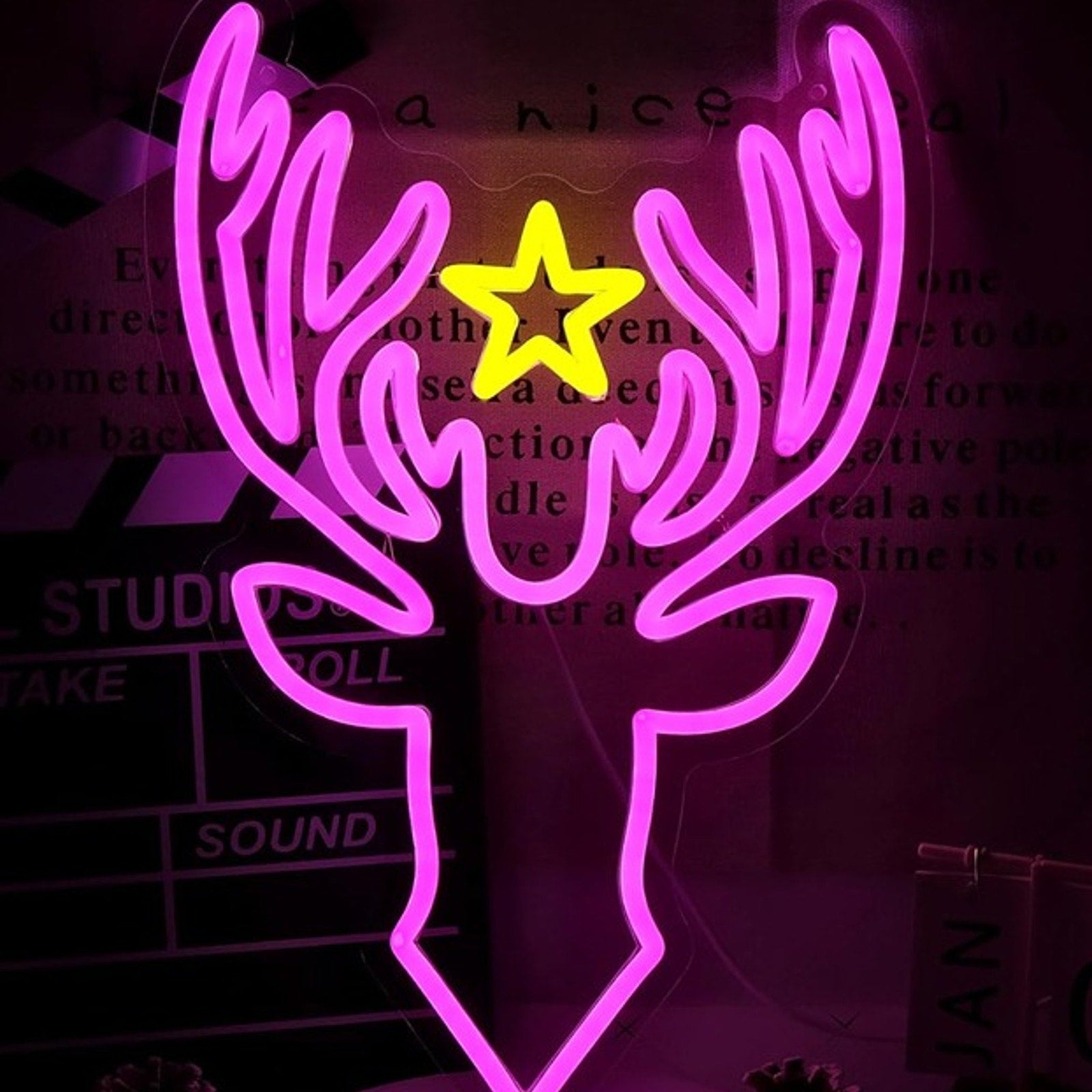 Lovely Bright Pink Reindeer Yellow Star LED Night Light Room Wall Decoration