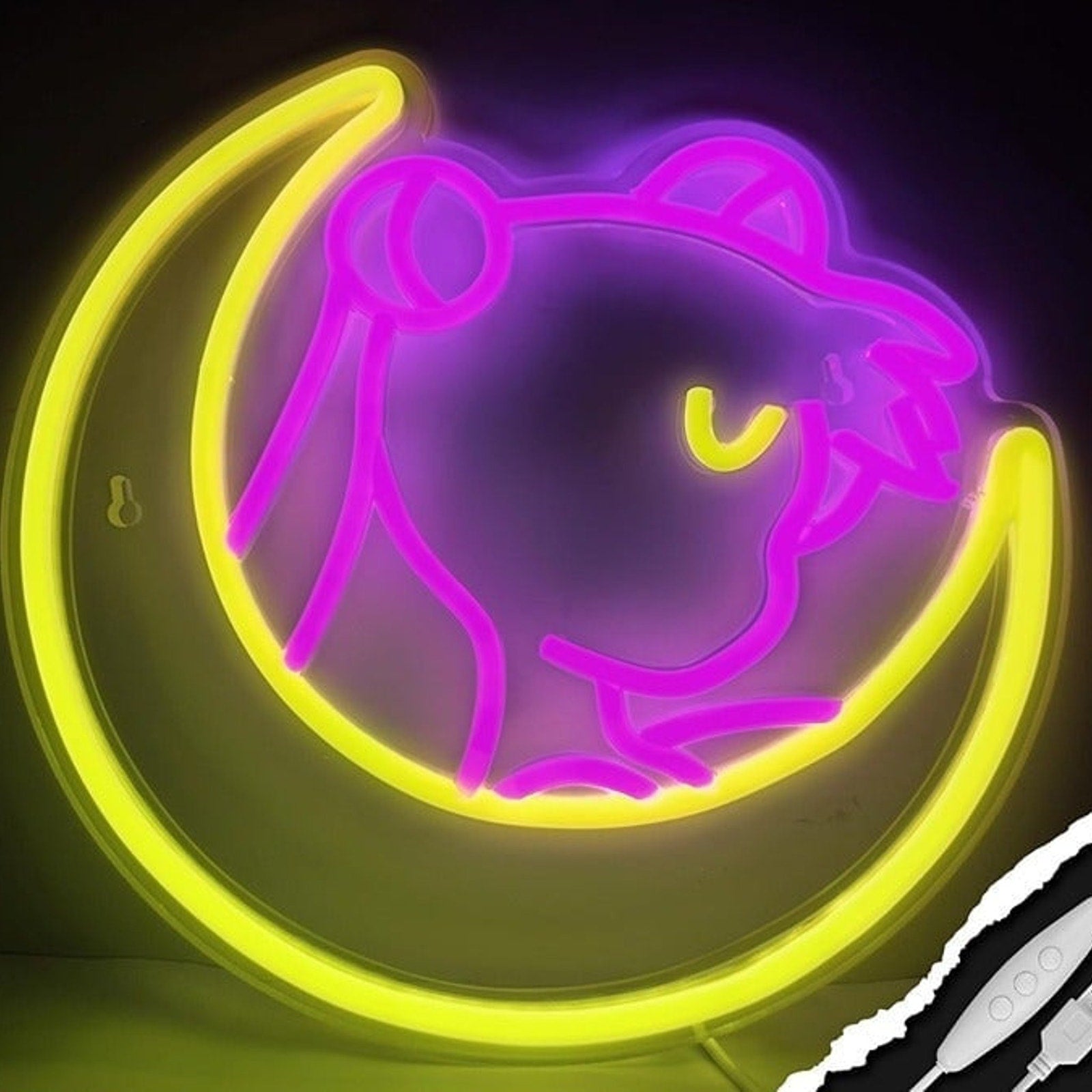 Lovely Bright Pink/Yellow Sailor Moon LED Night Light Anime Room Wall Decor