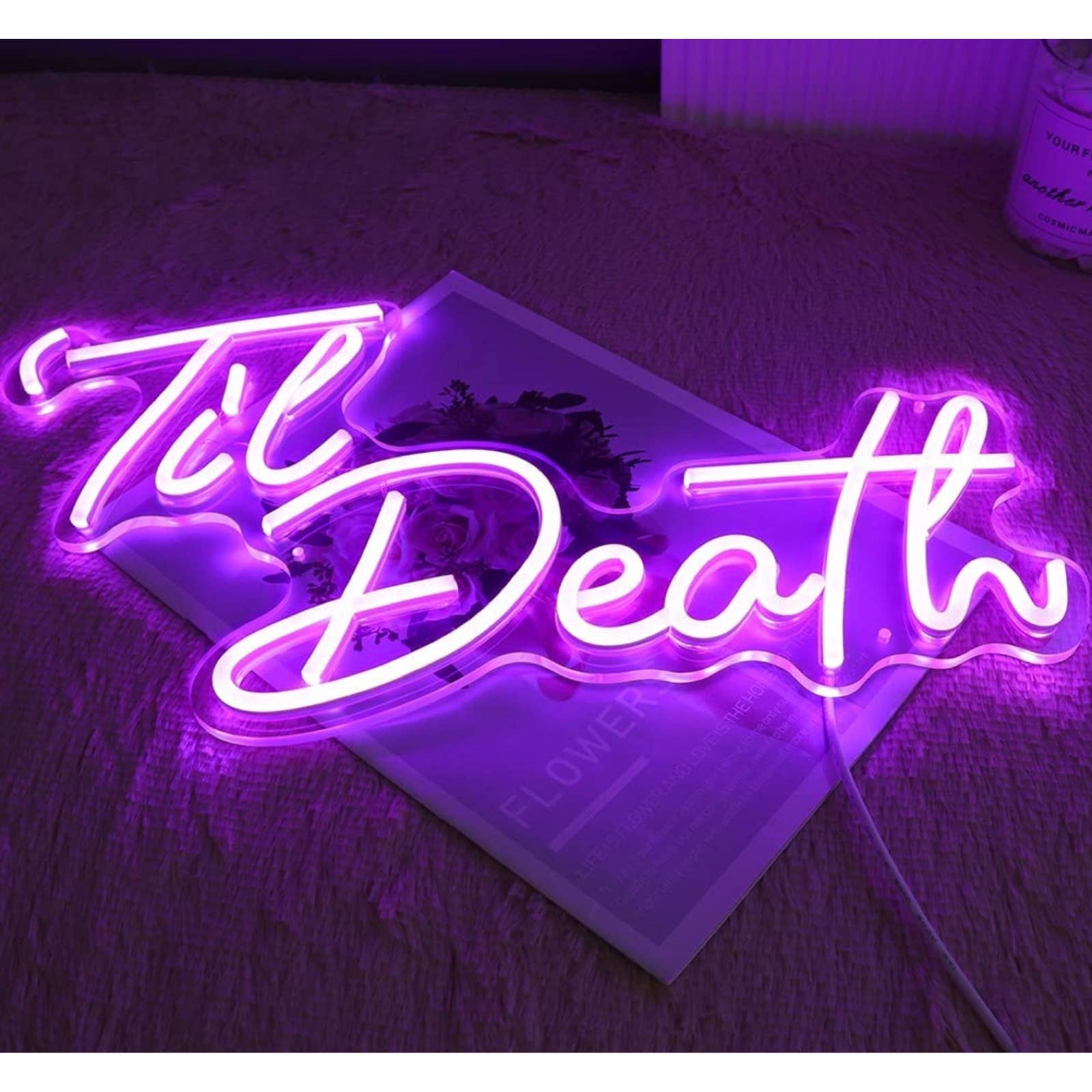 Lovely Bright Purple Unique “Til’ Death” LED Night Light Marriage Room Wall Deco