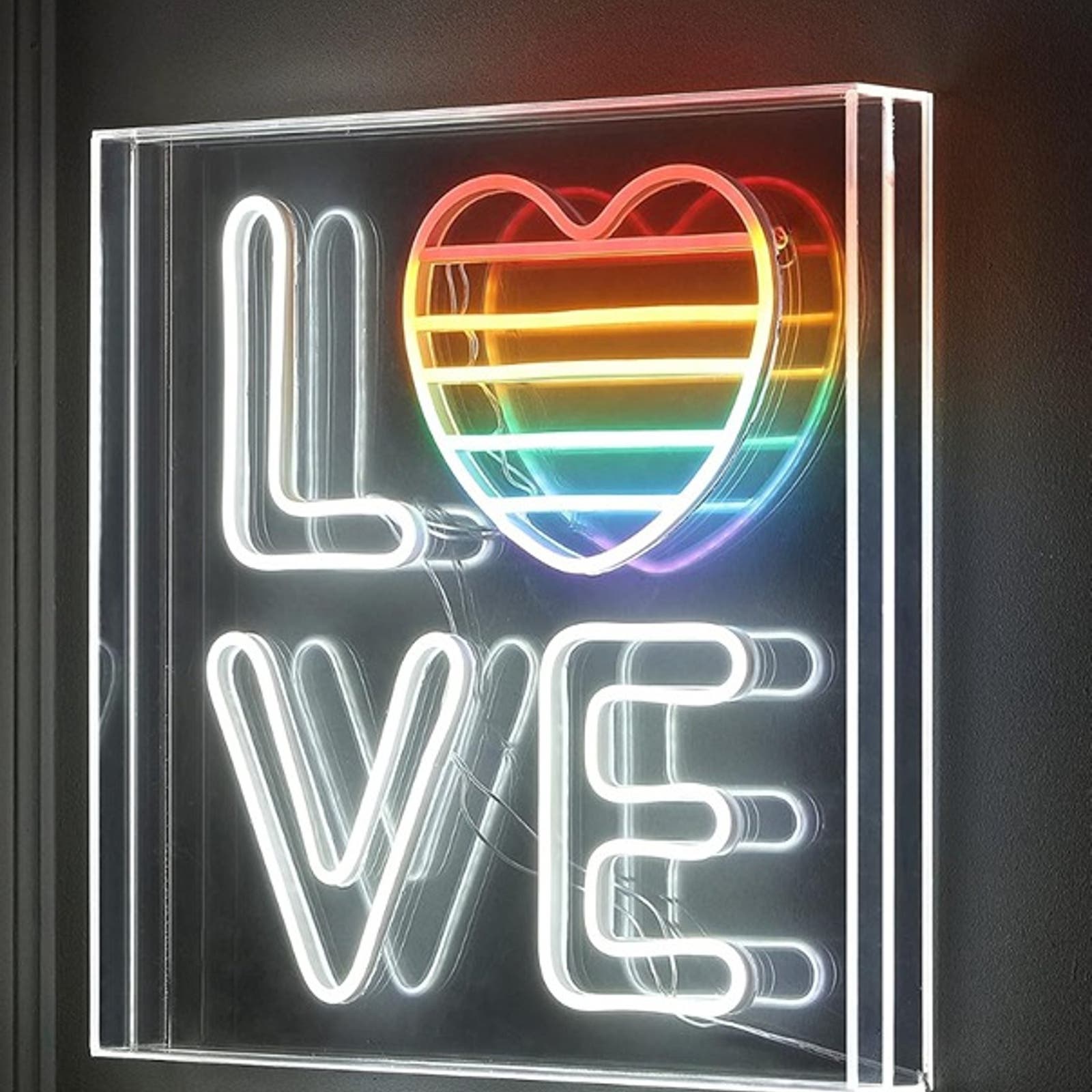 - LED night light box adorned with a colorful rainbow love heart