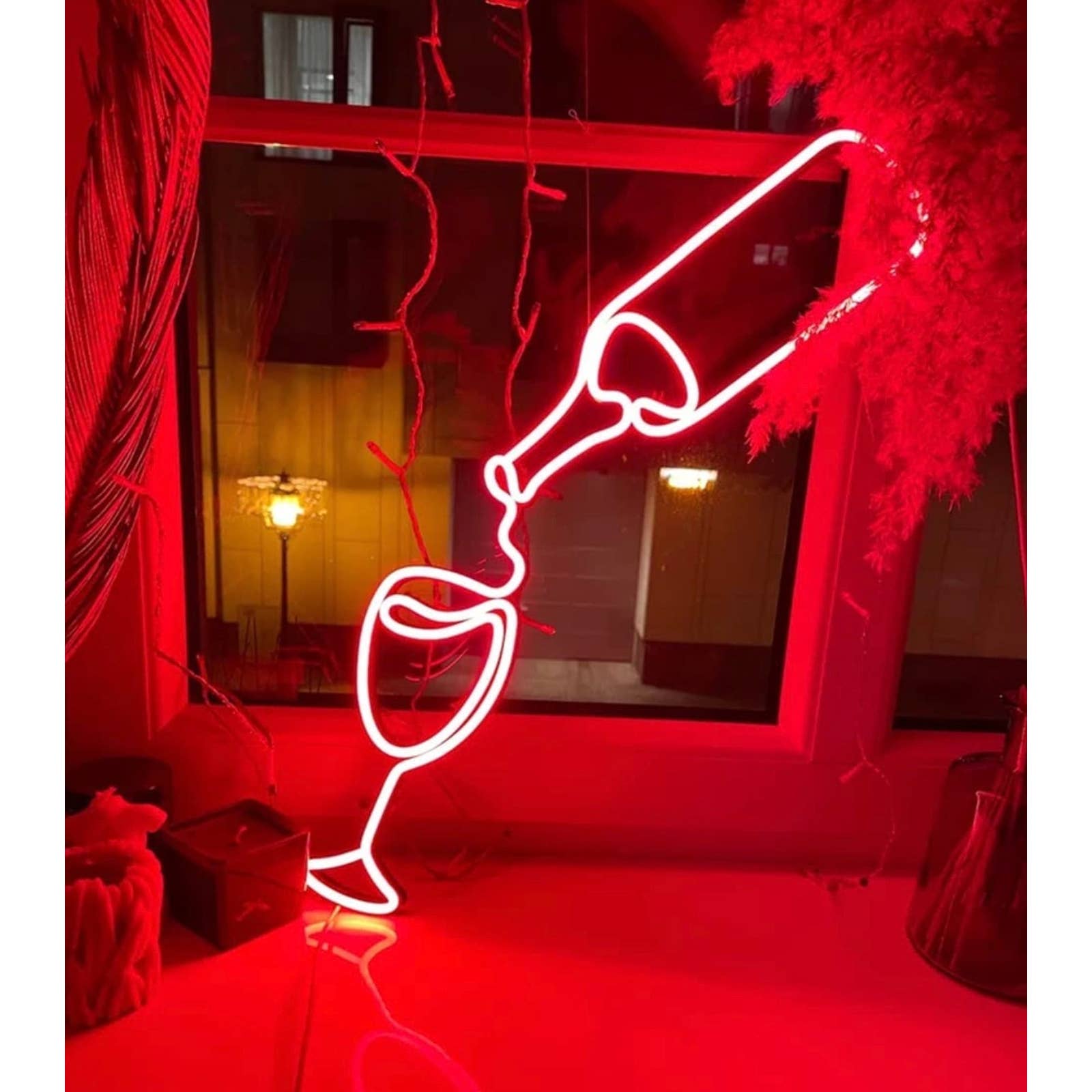 Lovely Bright Red Wine and Glass LED Night Light Bar Room Wall Party Decoration