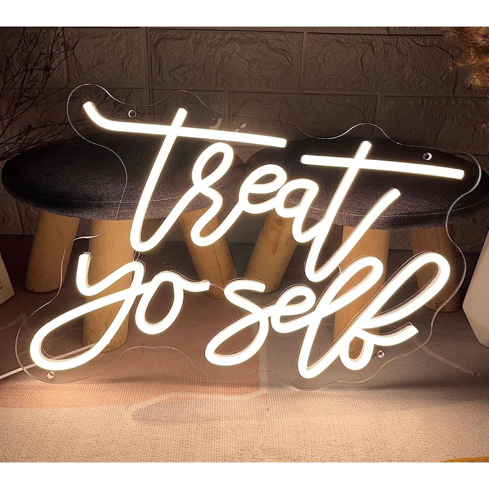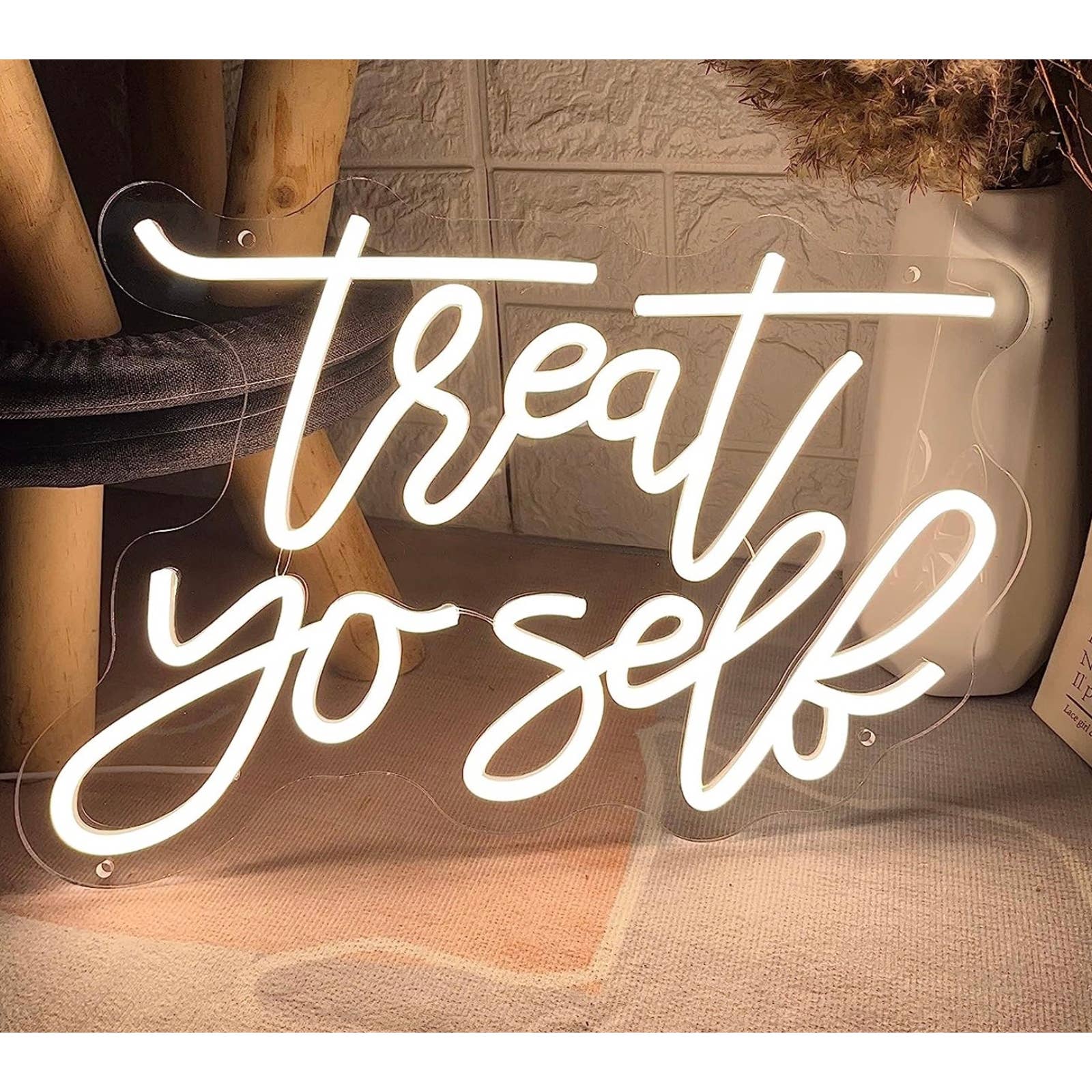 Lovely Bright Warm Bright Empowering “Treat YoSelf” LED Night Light Room Wall D