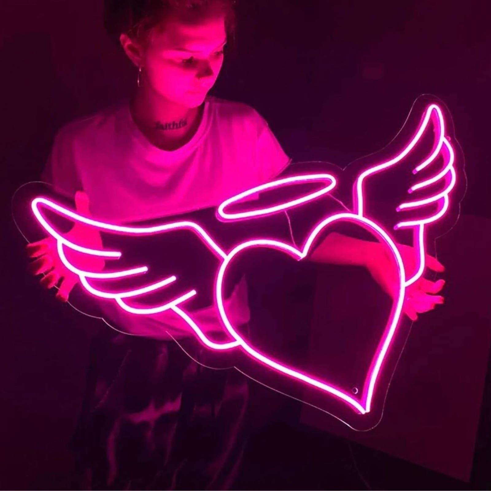 Wing neon Sign is perfect for your bedroom wall decor or living room, catch the eye and make simple life more colorful and interesting, LED neon wing sign can decorate your party background, show your uniqueness and Enough to fill your home, bedroom, bar, party with joy and beauty.