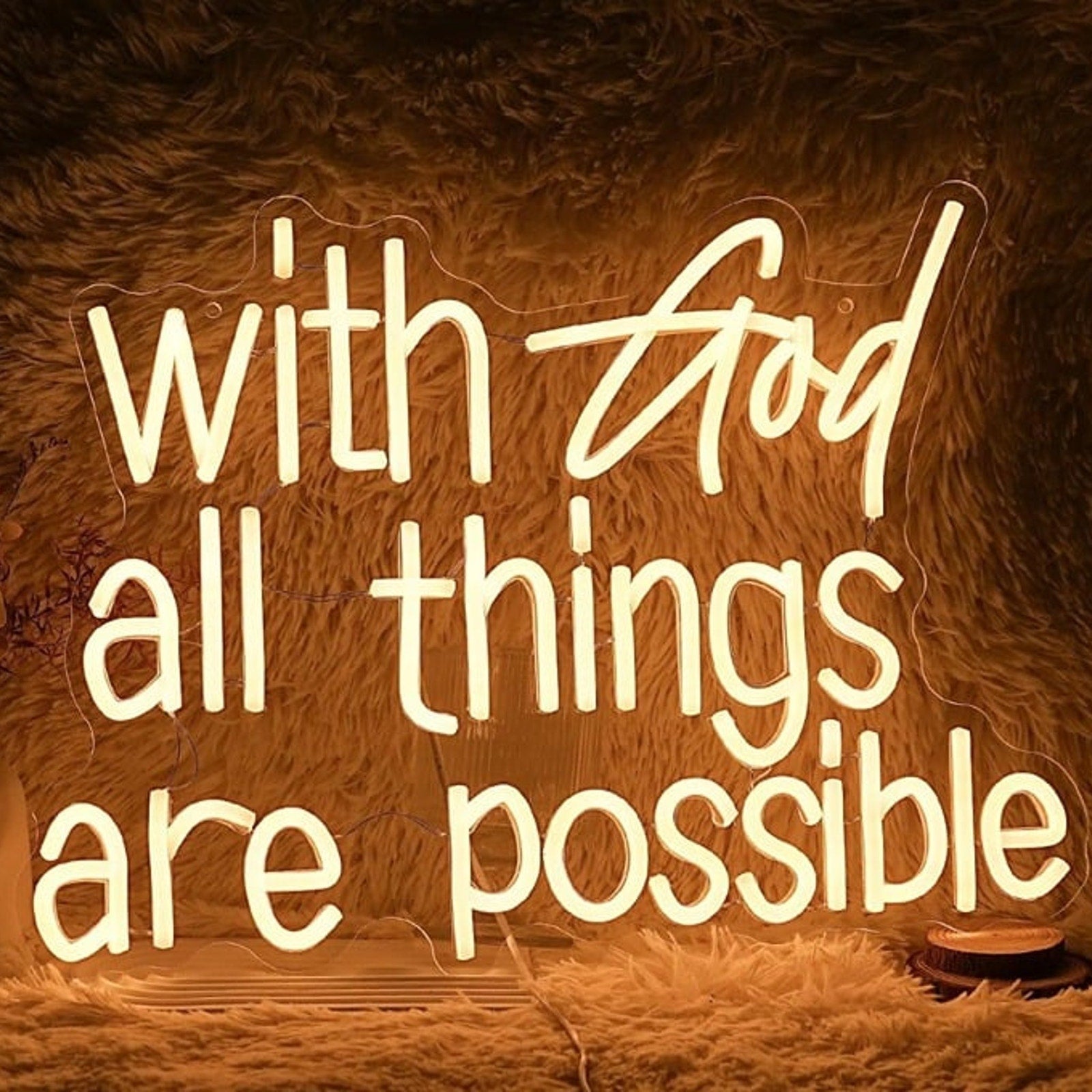 Lovely Bright Warm White “With God All Things Are Possible” LED Light Room Decor