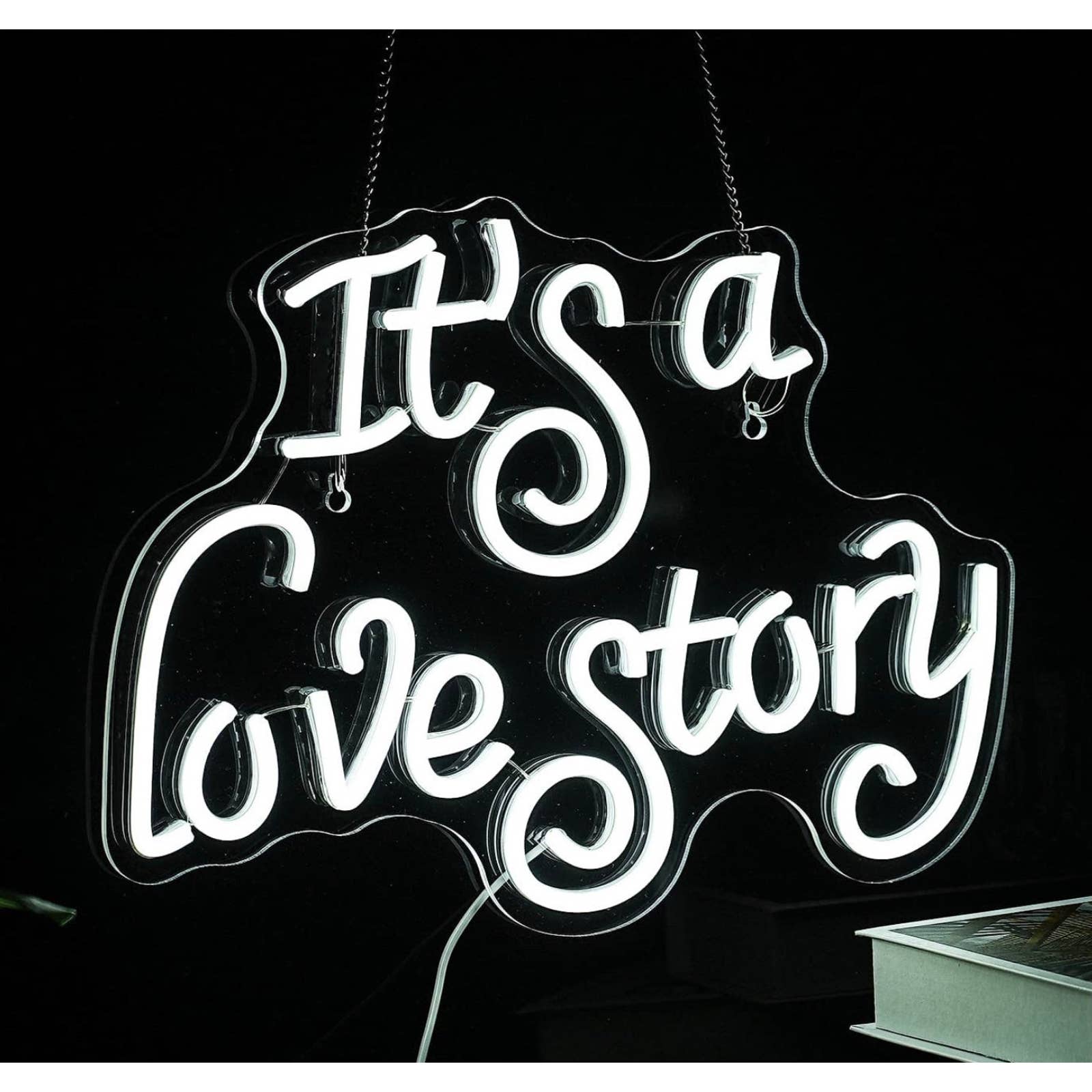 Lovely Bright White “It’s a Love Story” LED Night Light Room Wall Romantic Love