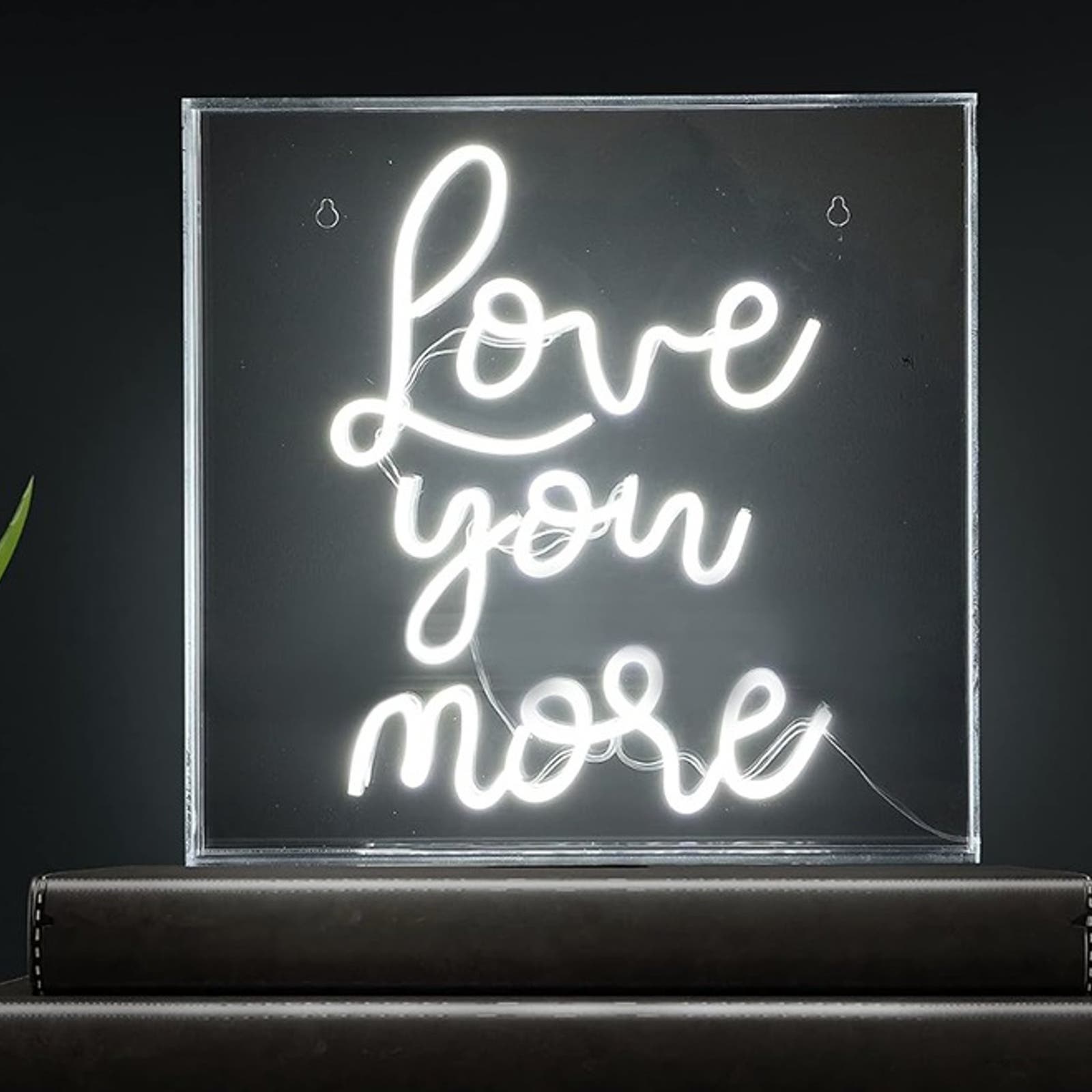 Elevate your space with the heartfelt charm of our Lovely Bright White 'Love You More' LED Night Light! This enchanting decor piece features the endearing phrase 'Love You More,' radiating a warm and inviting glow that adds a touch of love and positivity to any room.