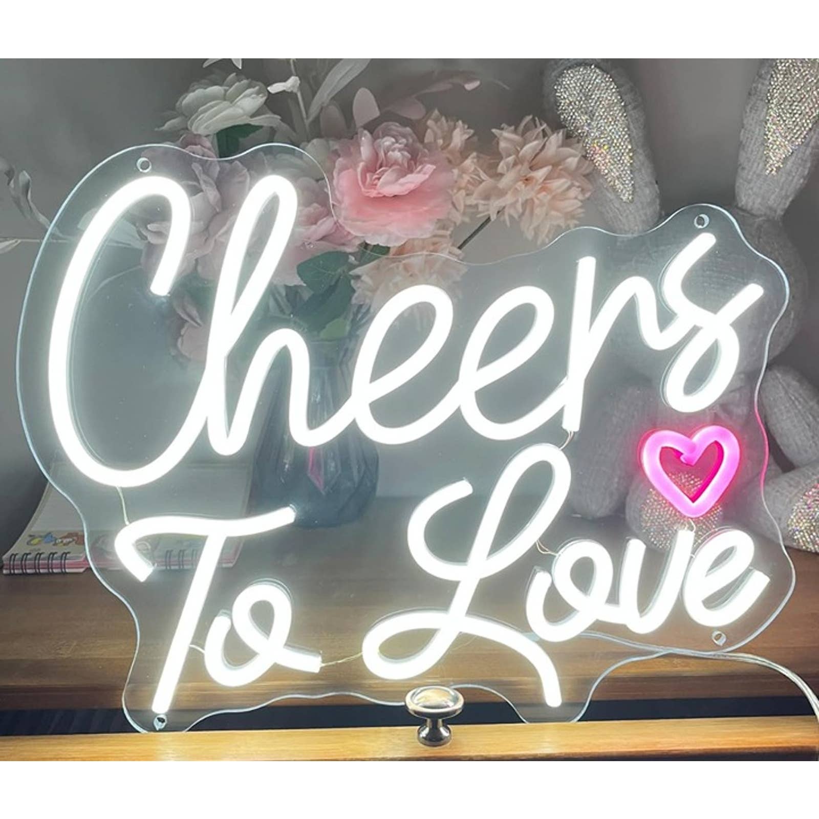 "Cheers to Love" Heart LED Night Light - Romantic Room Decor
