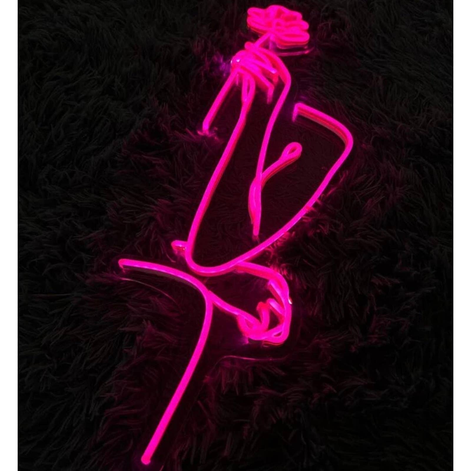 Lovely Elegant Pink Woman Holding a Flower LED Night Light Room Wall Decoration