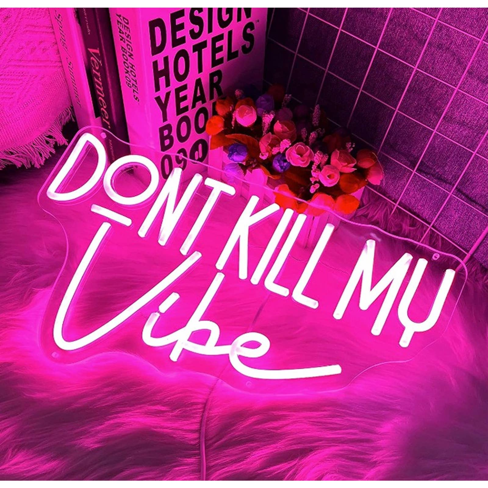 Lovely Fun Bright Pink “Don’t Kill My Vibe” LED Night Light Party Room Wall Deco
