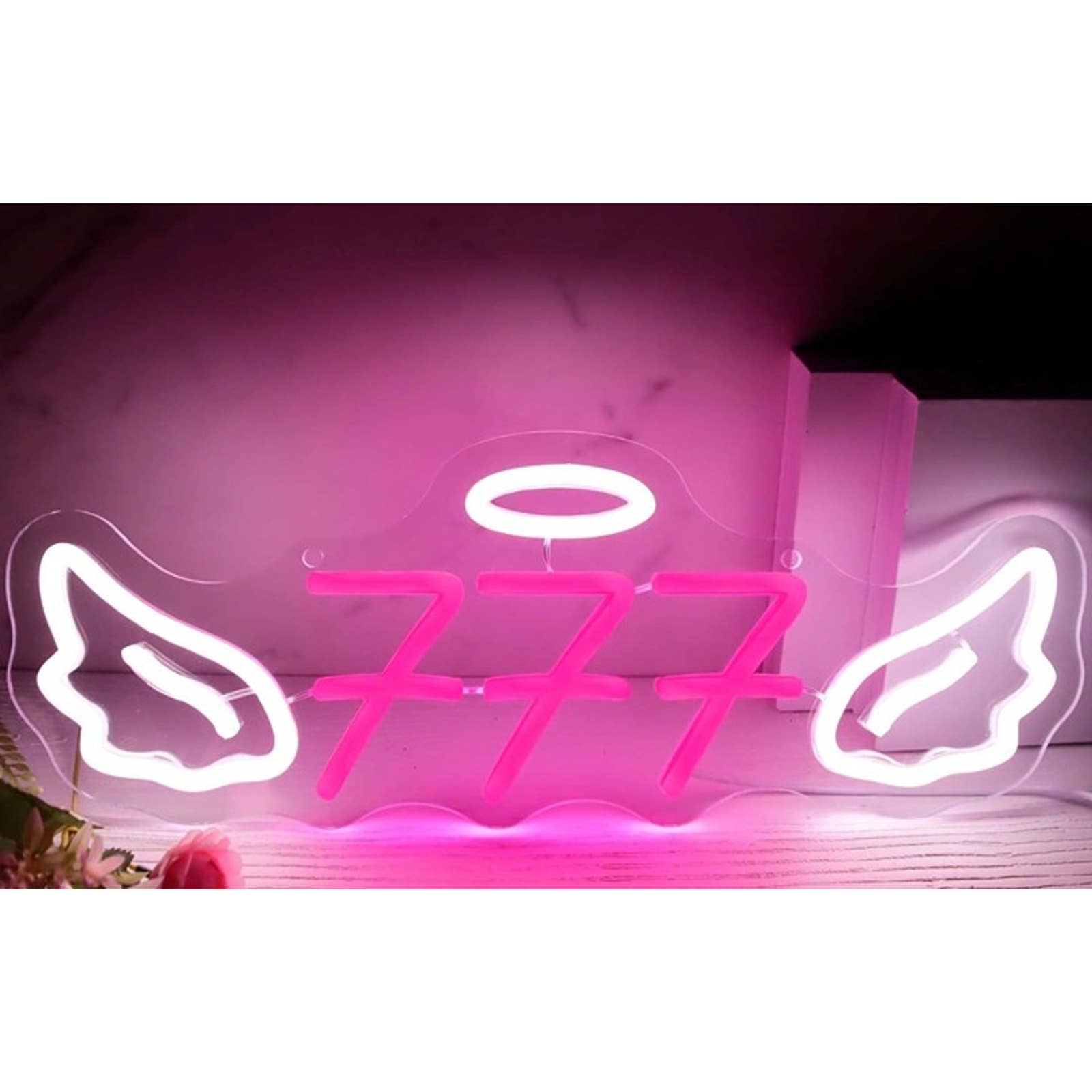 Gamer's Paradise: This LED night light features the Triple 7 symbol adorned with halo angel wings, perfect for creating a divine and immersive atmosphere in your game room.