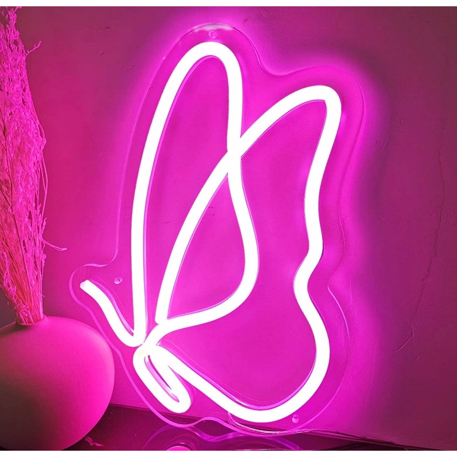 Lovely Vivid Pink Butterfly LED Night Light Room Wall Decoration