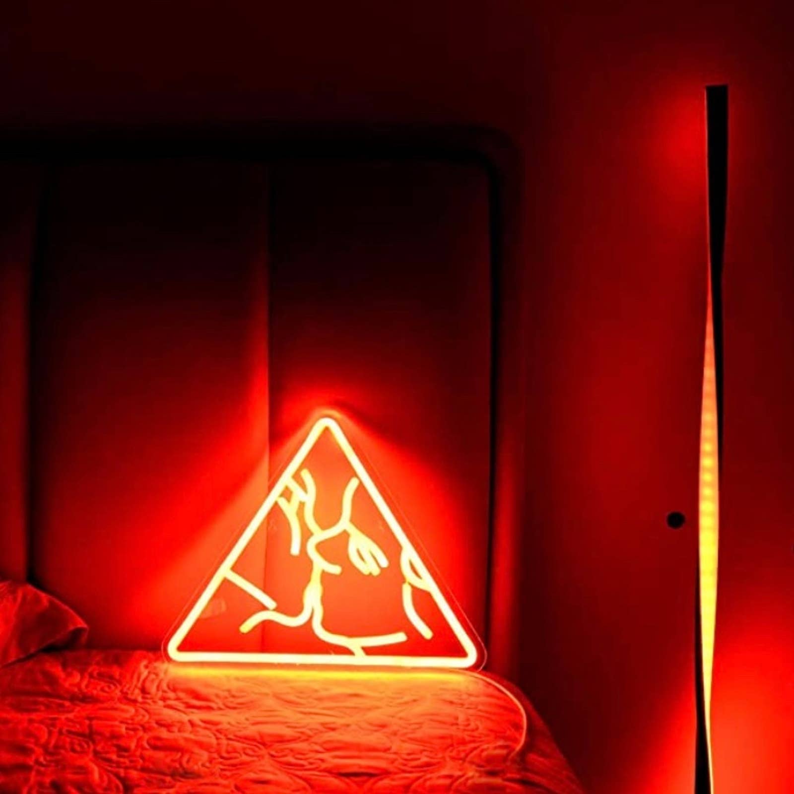 12 Inches Triangle Lover's Kiss Shape: Measuring 12 inches in height, the triangle lover's kiss shaped neon sign is the perfect size for any room. It's not too big, and not too small - just right!