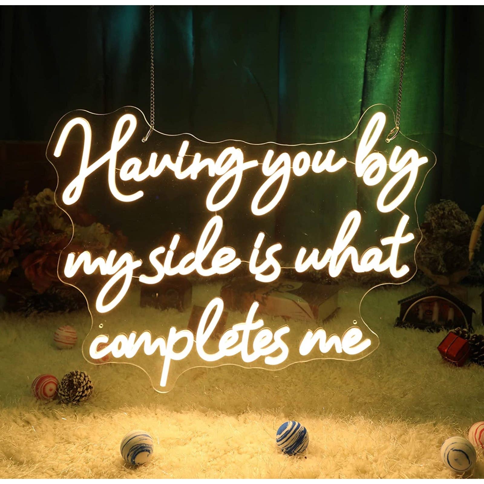 Romantic Warm Bright “Having You By My Side Is What Completes Me” LED Light Sign