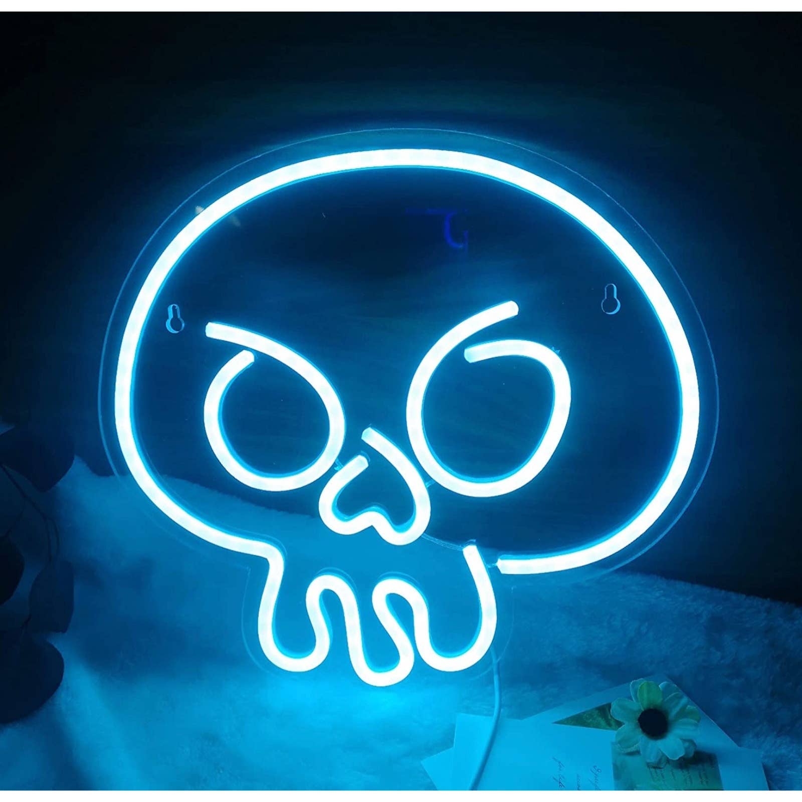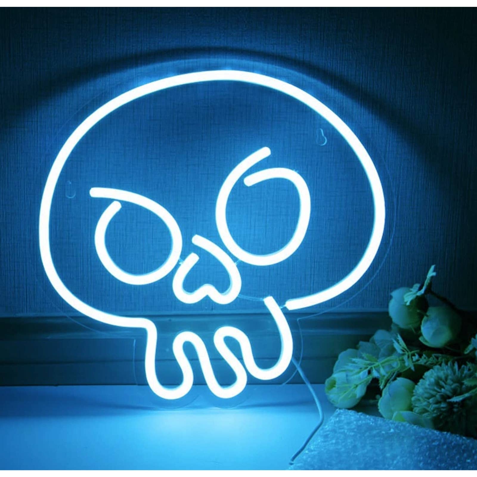 Simple Baby Blue Skull LED Night Light Room Wall Halloween Decor