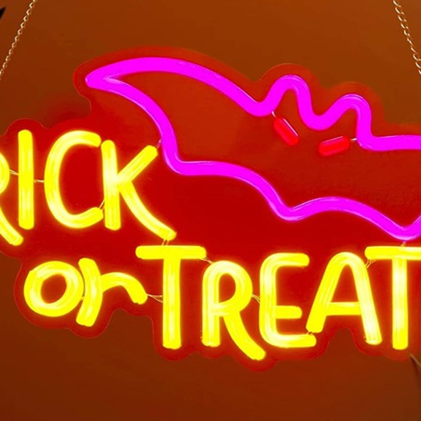 Spooky Bright Pink Bat Trick or Treat LED Night Light - Halloween Decor