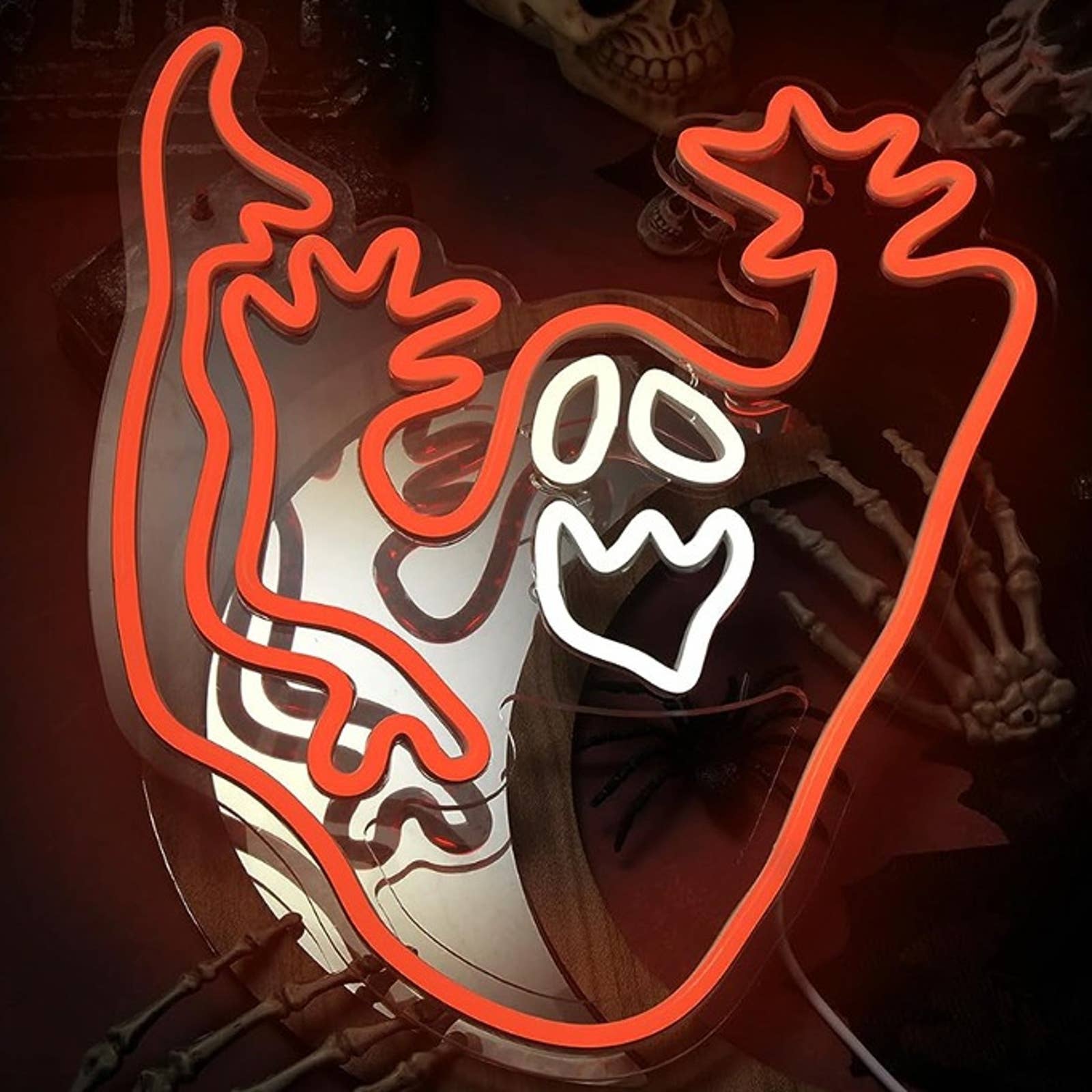 Light up your Halloween nights with the Spooky Red Ghost LED Night Light. This chilling wall decor captures the essence of the supernatural, casting an eerie crimson glow that adds an extra layer of spookiness to your haunted ambiance.