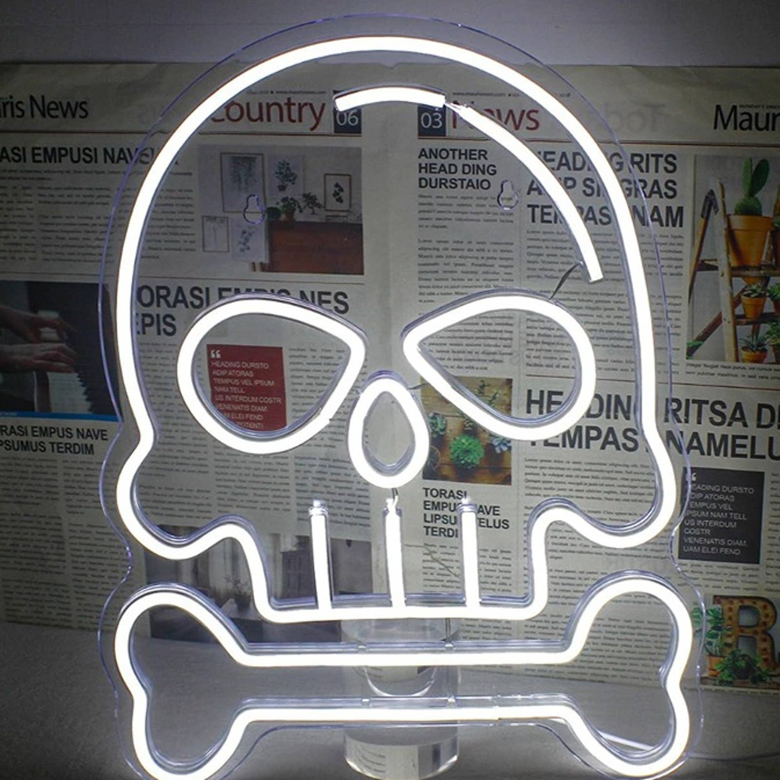 Spooky Bright White Skull & Bone LED Night Light - Halloween Decor