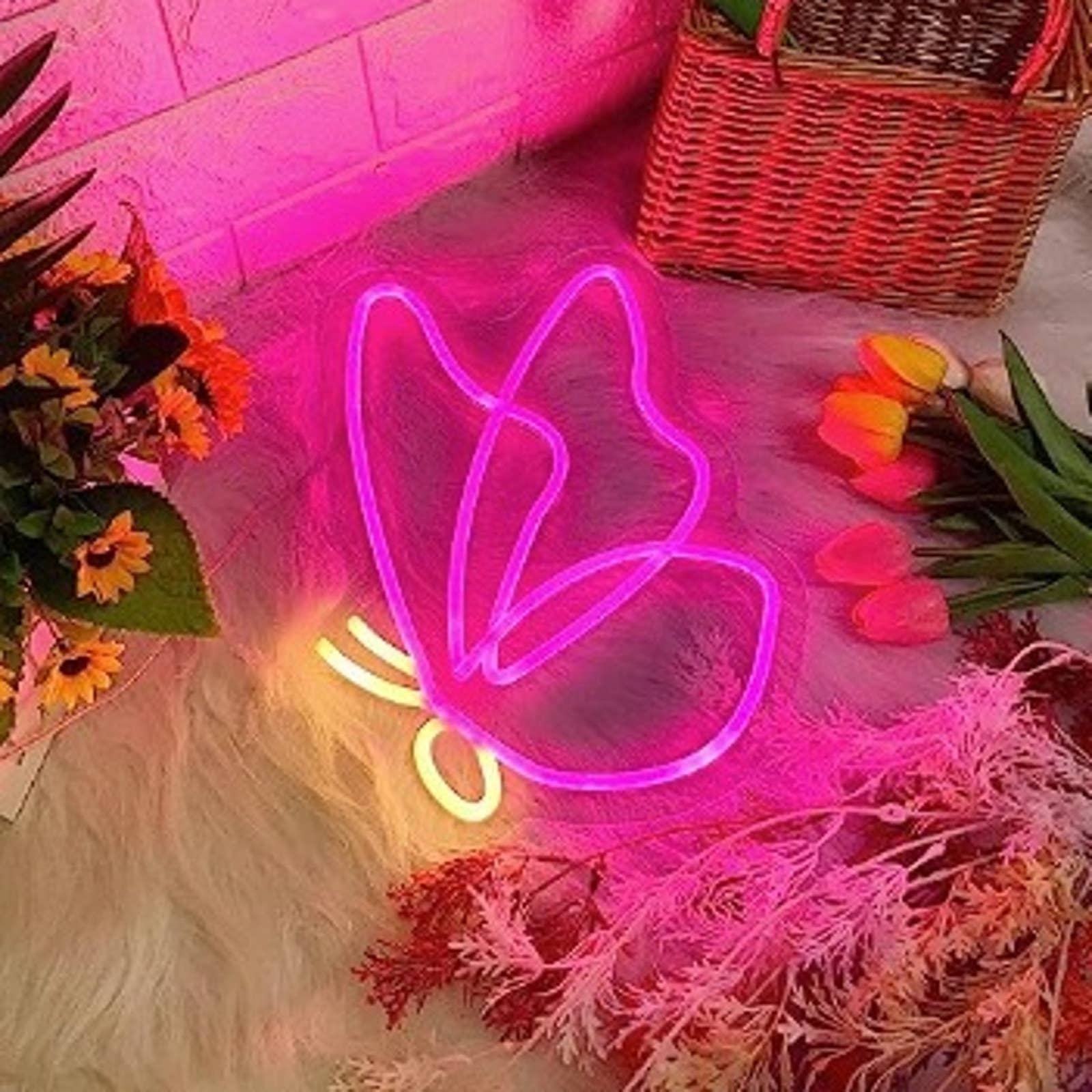 - Add a touch of charm and beauty to your bedroom, preppy room, or home decor with the Pink Butterfly LED neon light.