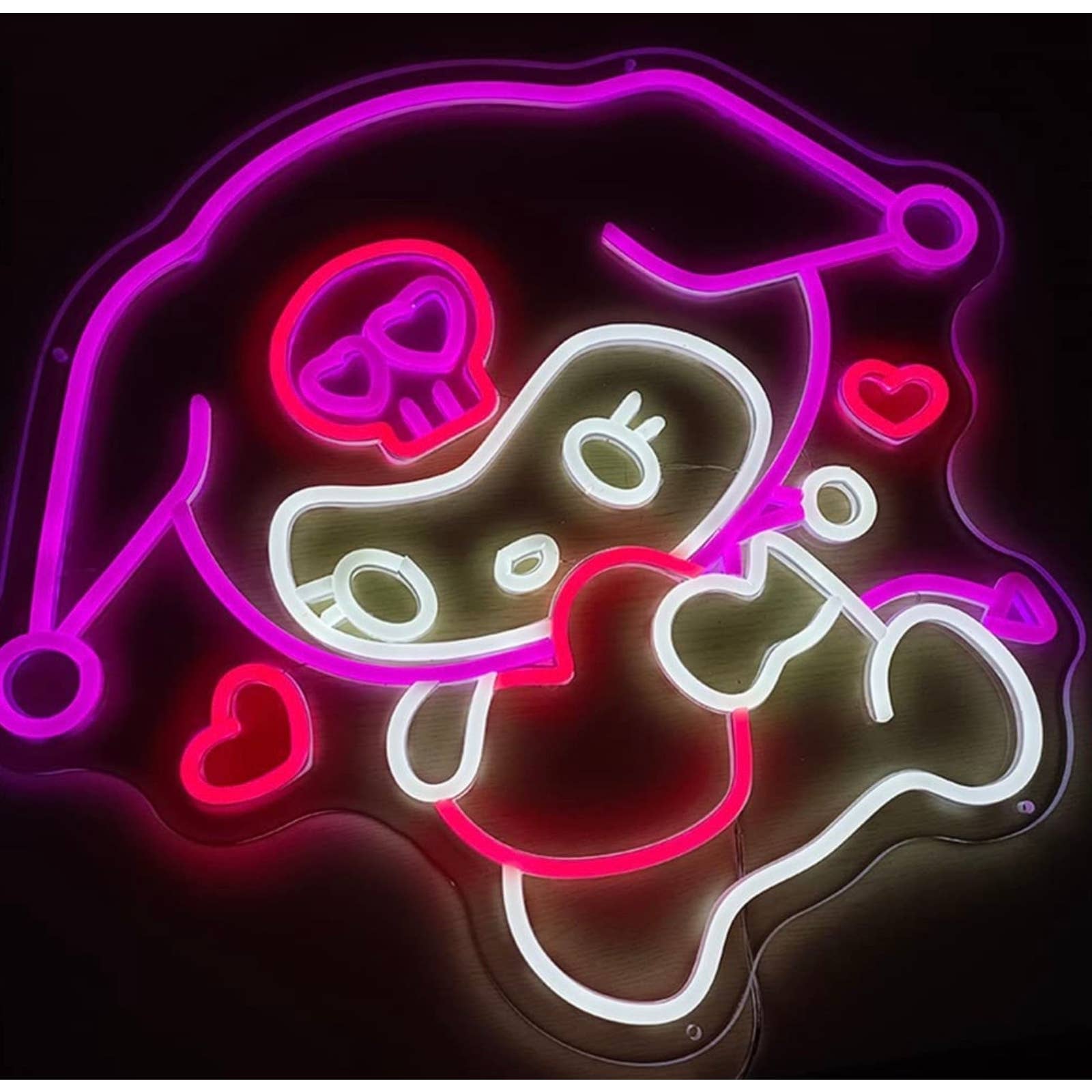 Super Adorable My Melody in Pink Skull Outfit LED Night Light Anime Room Wall D