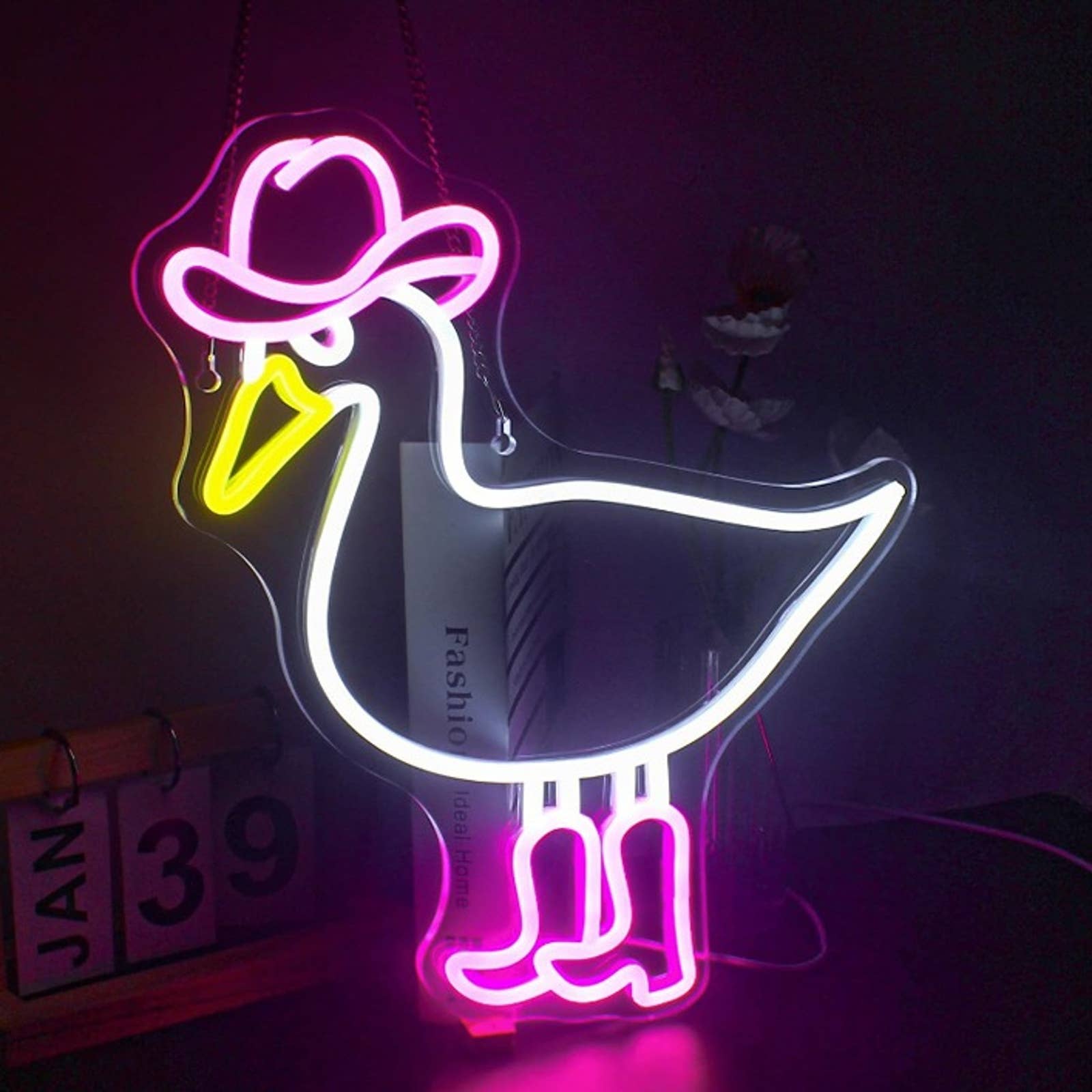 Super Cute Bright Cow Girl Duck in Boots LED Night Light Room Wall Decoration