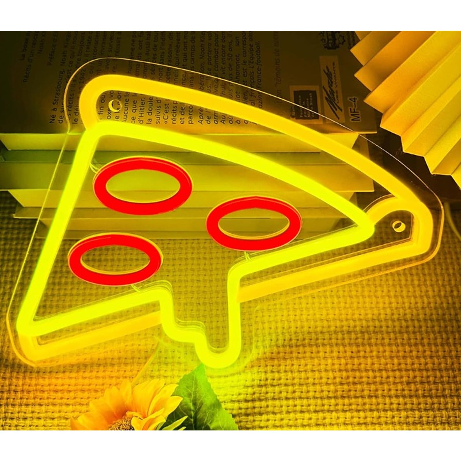 Tasty Warm Yellow Extra Cheesy Pepperoni Pizza LED Night Light Room Wall Decor