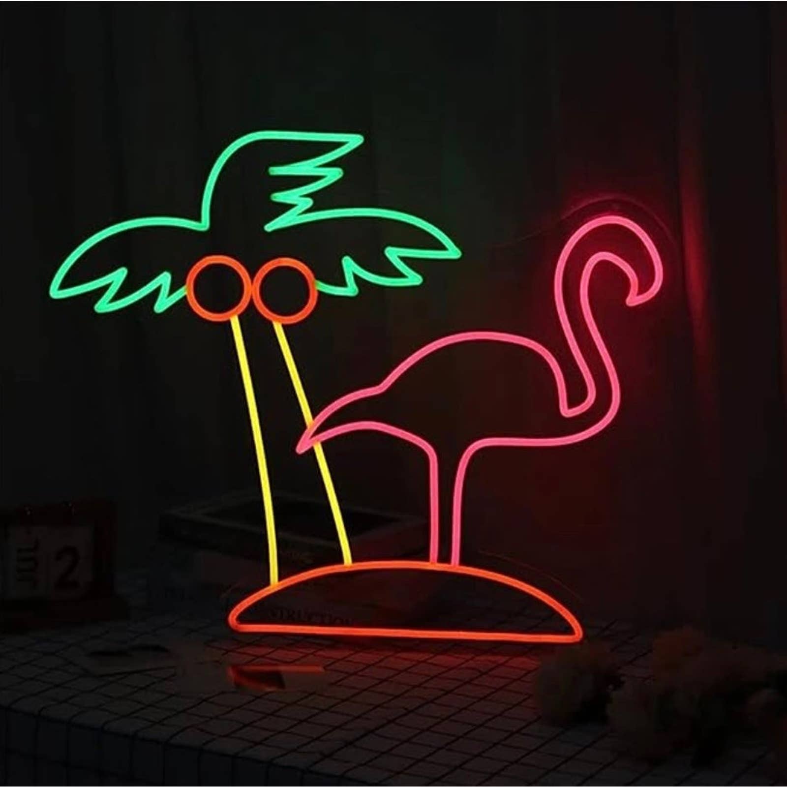 Tropical Bright Pink Flamingo & Palm Tree LED Night Light Room Wall Decoration
