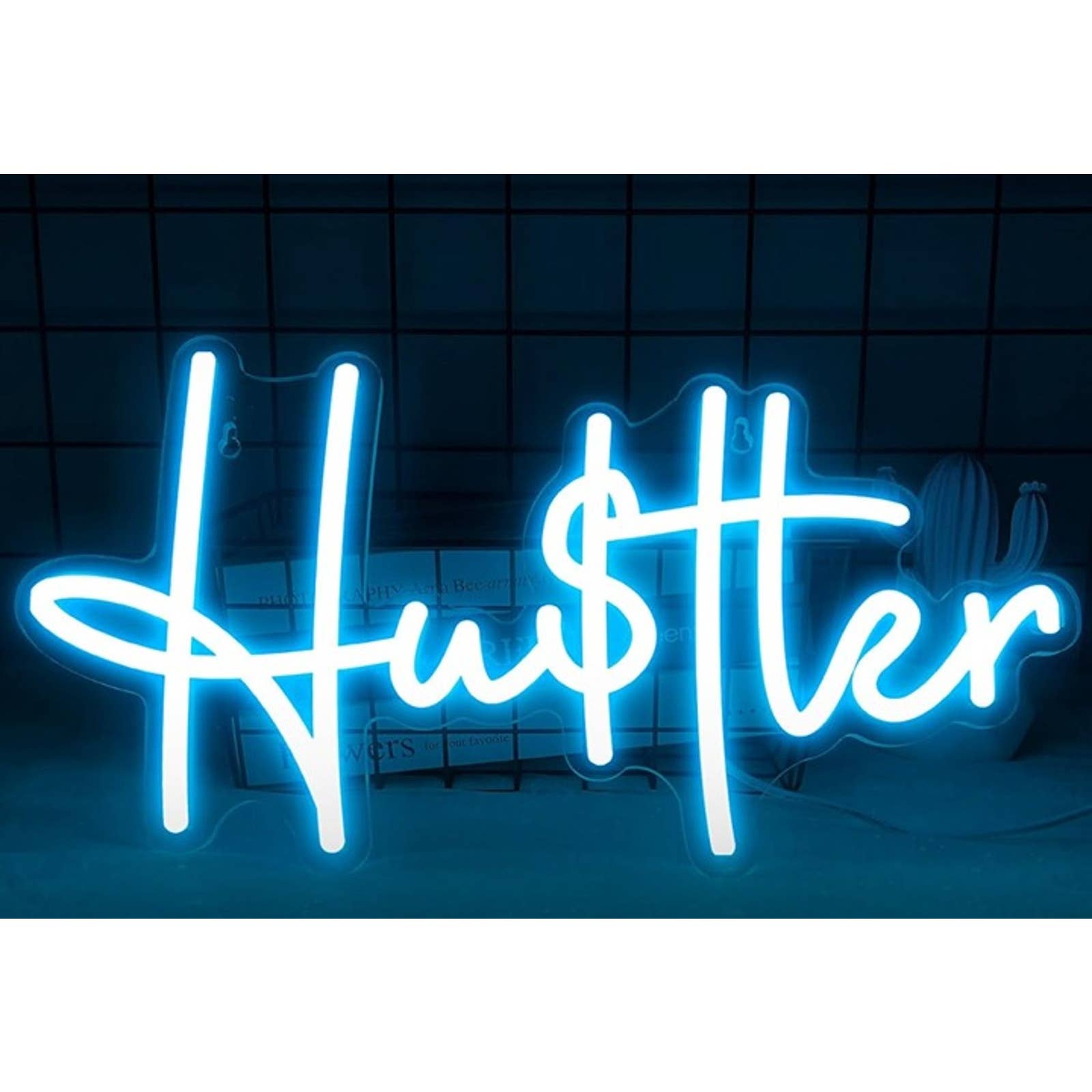 Vivid Bright Blue “Hustler” $ Sign LED Night Light Room Wall Decor