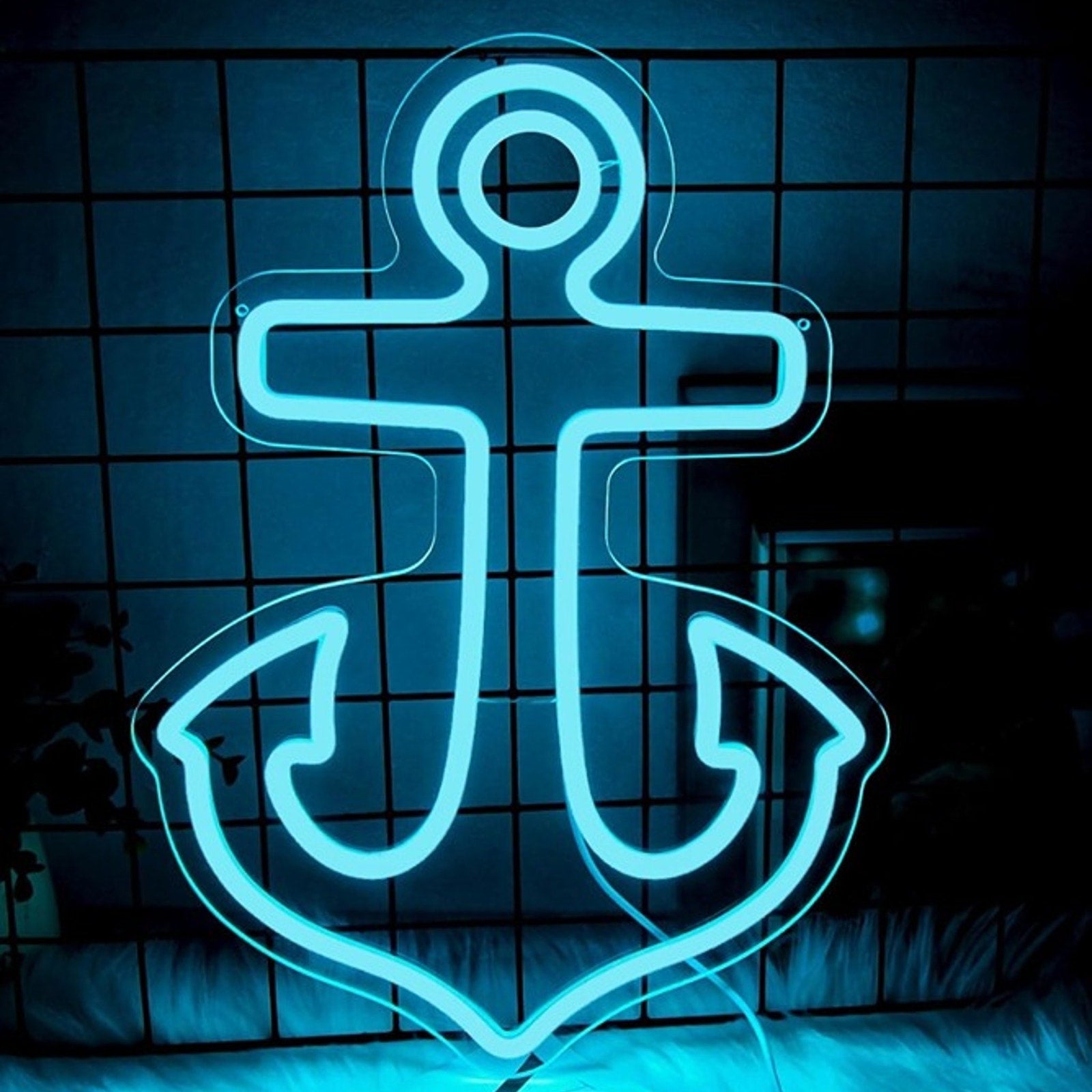 Vivid Bright Blue Ship Anchor LED Night Light Room Wall Decoration