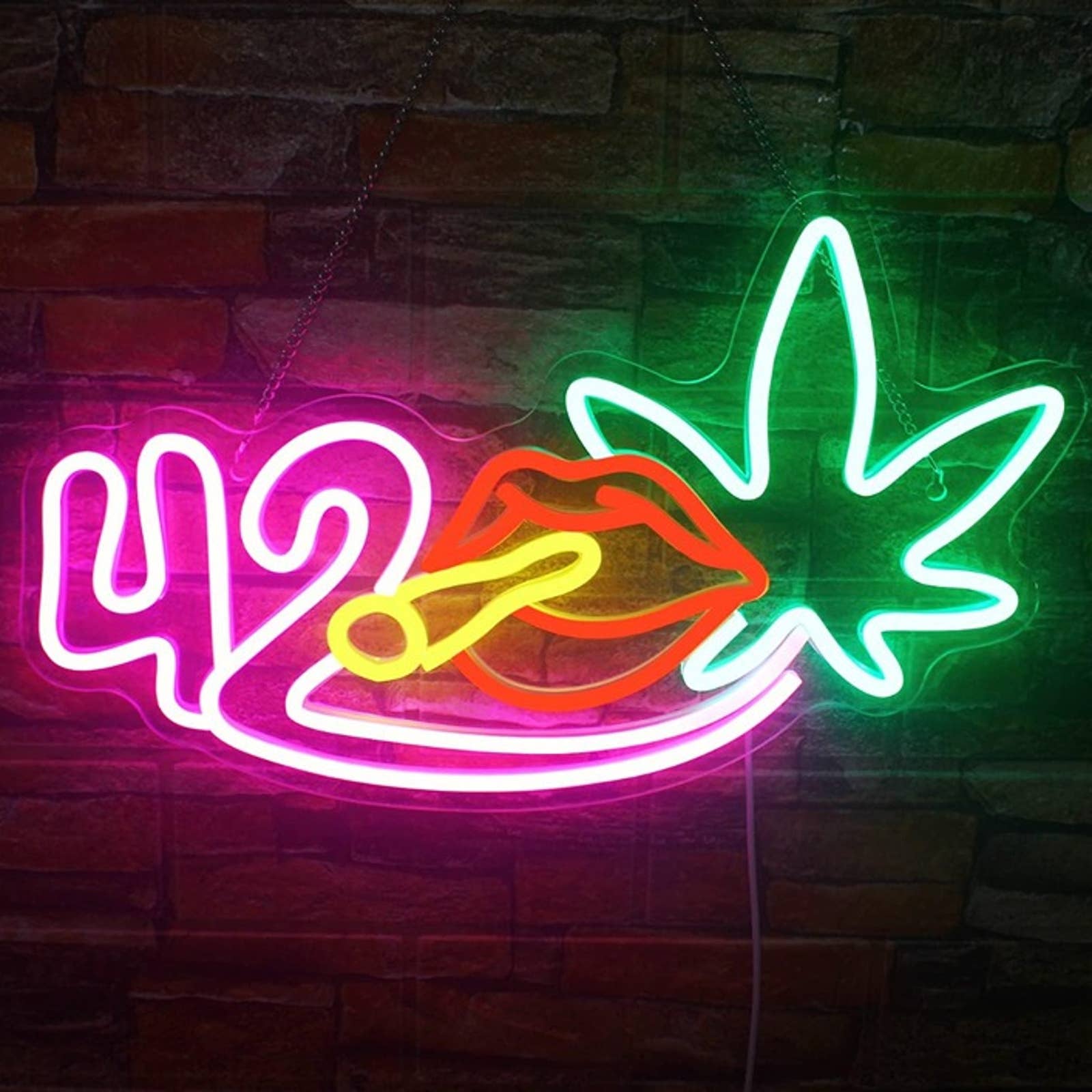 Vivid Bright Color 420 Smoking Lips High Plant LED Night Light Room Wall Decor