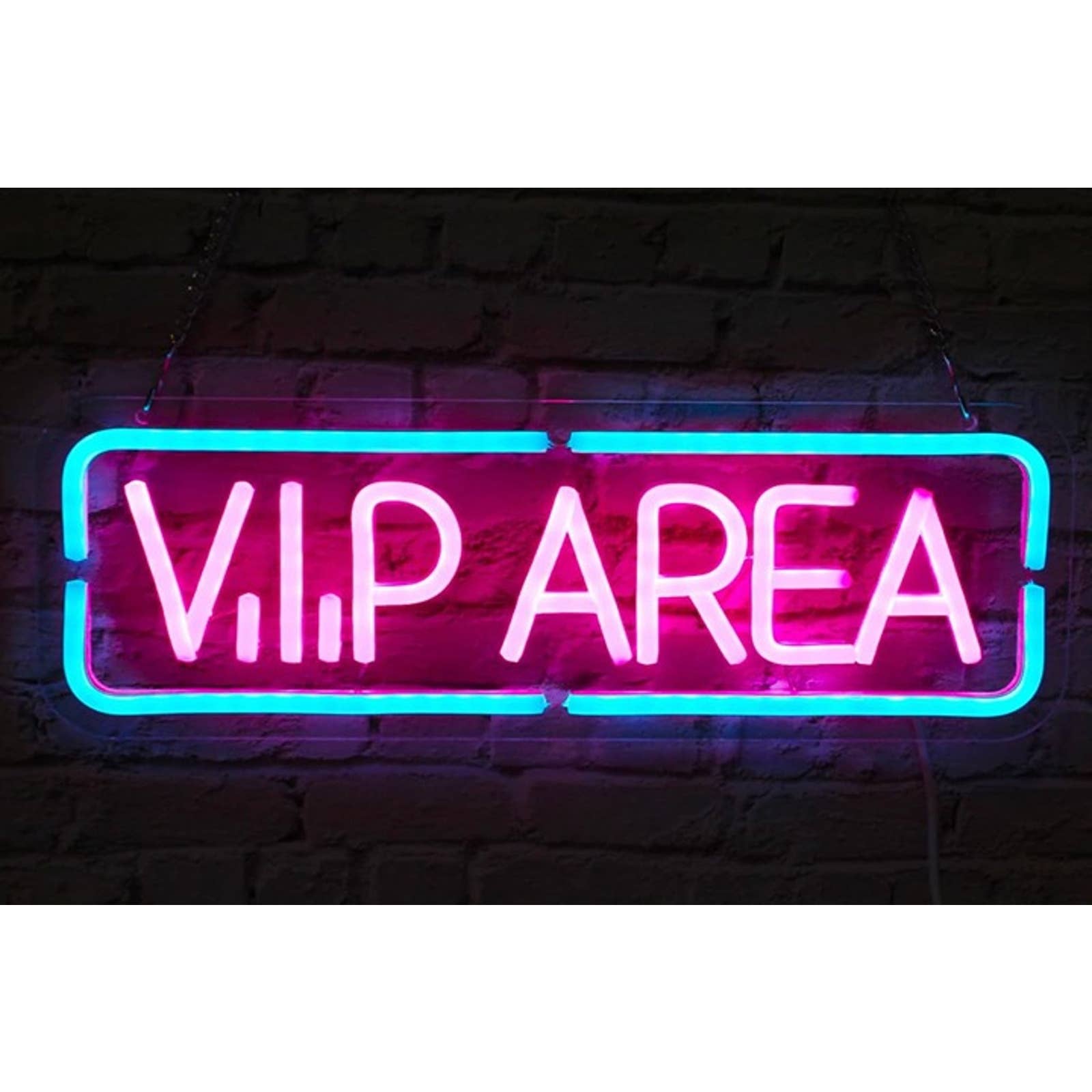 Exclusive Design: This light features "VIP AREA" in a captivating blend of pink and blue, perfect for creating an atmosphere that's both glamorous and inviting.
