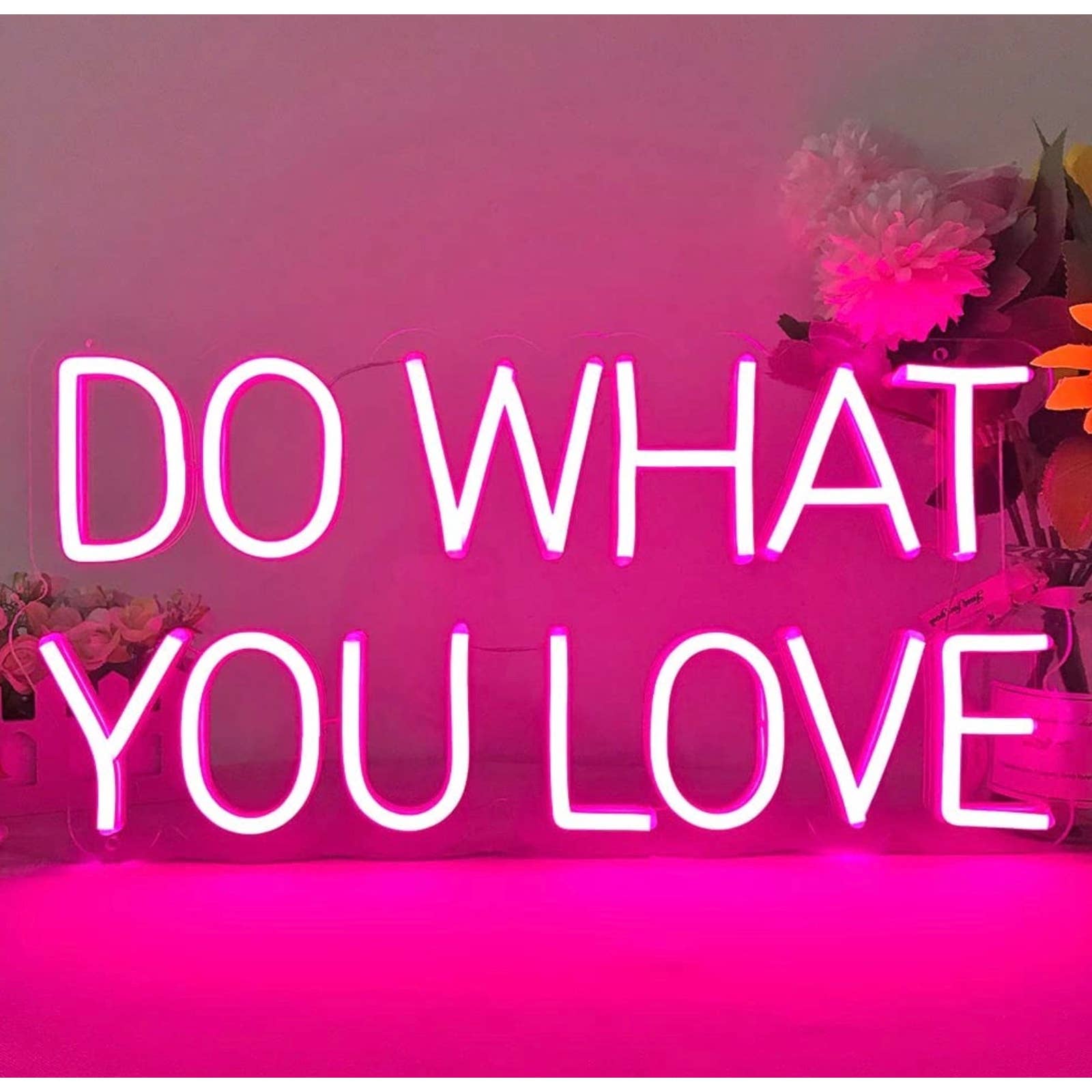 Vivid Bright Pink Do What You Love LED Night Light Room Wall Decor