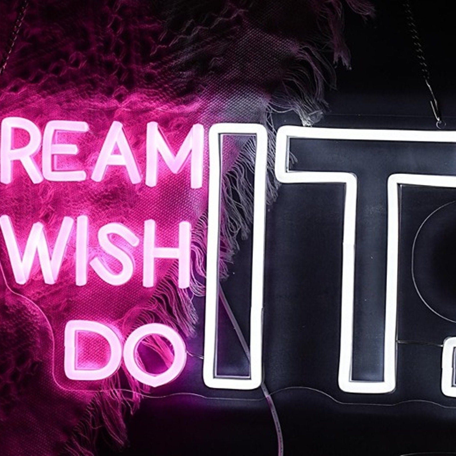 Light up any space with bold motivation and positive vibes! This “Dream It, Wish It, Do It” LED night light is the perfect reminder to chase dreams and make them a reality. With its vivid pink glow, this sign is a must have for bedrooms, offices, dorms, and creative spaces.